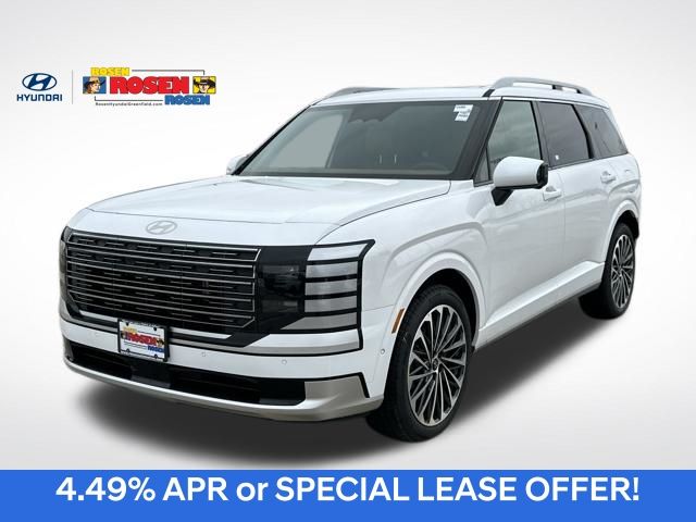 Navigation System,Option Group 01,12 Speakers,AM/FM radio: SiriusXM,Radio: AM/FM/HD Bose Premium Audio System,Air Conditioning,Automatic temperature control,Front dual zone A/C,Rear window defroster,Heads-Up Display,Memory seat,Power driver seat,Power steering,Power windows,Remote keyless entry,Steering wheel mounted audio controls,Four wheel independent suspension,Speed-sensing steering,Traction control,4-Wheel Disc Brakes,ABS brakes,Dual front impact airbags,Dual front side impact airbags,Emergency communication system,Front anti-roll bar,Knee airbag,Low tire pressure warning,Occupant sensing airbag,Overhead airbag,Rear anti-roll bar,Rear side impact airbag,Power moonroof,Power Liftgate,Brake assist,Electronic Stability Control,Exterior Parking Camera Rear,Auto High-beam Headlights,Delay-off headlights,Fully automatic headlights,Panic alarm,Security system,Speed control,Bumpers: body-color,Heated door mirrors,Power door mirrors,Spoiler,Turn signal indicator mirrors,Apple CarPlay & Android Auto,Auto-dimming Rear-View mirror,Carpeted Floor Mats,Driver door bin,Driver vanity mirror,Front reading lights,Garage door transmitter: HomeLink,Heated steering wheel,Illuminated entry,Leather steering wheel,Outside temperature display,Overhead console,Passenger vanity mirror,Tachometer,Telescoping steering wheel,Tilt steering wheel,Trip computer,3rd row seats: bench,Front Bucket Seats,Front Center Armrest,Heated & Ventilated Front Bucket Seats,Heated front seats,Heated rear seats,Power passenger seat,Premium Nappa Leather Seat Trim,Split folding rear seat,Ventilated front seats,Passenger door bin,Tow Hitch,Alloy wheels,Wheels: 21" x 8.5J Unique Dark Finish Alloy,Rain sensing wipers,Rear window wiper,Variably intermittent wipers,FREE MAINTENANCE WITHIN THE FIRST THREE YEARS!!,The 2025 Hyundai Santa Fe Calligraphy AWD offers a compelling mix of luxury, performance, and practicality. Here are key reasons to consider buying it: 1. Premium Features and Styling Top-of-the-Line Trim: The Calligraphy trim includes upscale materials like quilted Nappa leather seats, ambient interior lighting, and a panoramic sunroof. Elegant Exterior: It boasts a distinctive grille, 20-inch alloy wheels, and signature LED lighting, offering a bold, refined look. 2. Advanced Technology High-Tech Infotainment: A 12.3-inch digital instrument cluster and a 12.3-inch touchscreen with navigation, Apple CarPlay, and Android Auto enhance your driving experience. Premium Audio: The Harman Kardon sound system delivers high-quality audio, perfect for music lovers. 3. Performance and All-Wheel Drive Turbocharged Engine: It comes with a powerful turbocharged engine that balances performance and fuel efficiency. AWD Capability: All-Wheel Drive provides enhanced traction and stability in various driving conditions, ideal for those in areas with inclement weather. 4. Advanced Safety Features Hyundai SmartSense: Includes a suite of advanced driver-assistance systems, such as adaptive cruise control, blind-spot monitoring, lane-keeping assist, and more. Remote Smart Parking Assist: Helps you park and retrieve the car in tight spaces remotely, a convenient feature for city driving. 5. Spacious and Comfortable Interior Ample Space: Offers plenty of legroom for passengers and a large cargo area, making it great for families or road trips. Quiet Ride: Designed with noise-canceling features for a quieter, more relaxing cabin experience. 6. Long Warranty Coverage Hyundais Industry-Leading Warranty: Youll get a 10-year/100,000-mile powertrain warranty, offering peace of mind for long-term ownership. If you want luxury, technology, safety, and utility wrapped in a stylish SUV, the 2025 Hyundai Santa Fe Calligraphy AWD is a solid choice.