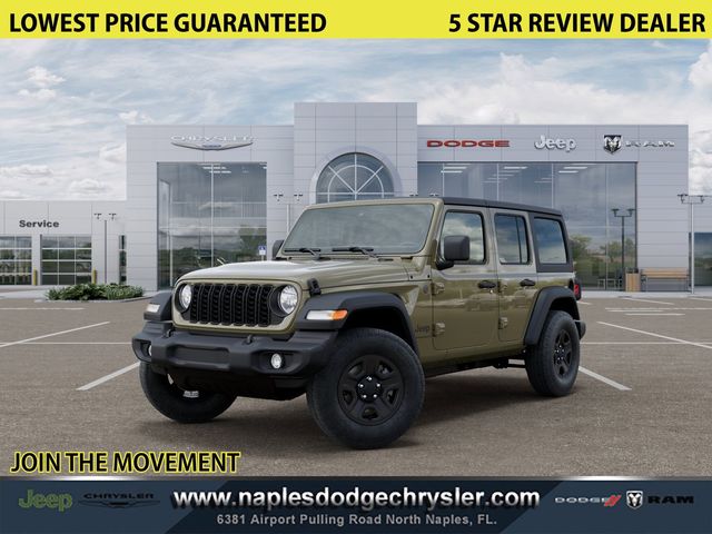 Elevate your off-road adventures with the exceptional 2025 Jeep Wrangler Sport S. This rugged SUV is engineered to conquer any terrain, offering unparalleled capability and a bold, distinctive style that will turn heads wherever you go. Boasting a dazzling Mojito Clearcoat Green exterior, this Wrangler Sport S is equipped with an impressive array of features that cater to your every need: - Sky 1-Touch Power Top - Mopar Black Tubular Side Steps - Advanced Brake Assist - Automatic Headlamps - Enhanced Adaptive Cruise Control - Corning Gorilla Glass - Power Heated Mirrors - Full Speed Forward Collision Warning Plus - Sun Visors with Illuminated Vanity Mirrors Under the hood, the 3.6L V6 24V VVT engine, paired with an 8-Speed Automatic transmission, delivers a thrilling driving experience with exceptional 4WD capability. Enjoy impressive fuel efficiency, with an EPA-estimated 18 MPG in the city and 23 MPG on the highway. Whether you're tackling rugged off-road adventures or navigating the urban jungle, the 2025 Jeep Wrangler Sport S is the ultimate companion. Its durable construction, advanced technology, and uncompromising performance make it the perfect choice for those who demand the best. Imagine yourself behind the wheel, taking on the open road and conquering any challenge that comes your way. This Wrangler Sport S is more than just a vehicle it's a gateway to a life of boundless exploration and unparalleled freedom. Experience the thrill of owning this exceptional 2025 Jeep Wrangler Sport S for yourself. Visit Naples Chrysler Dodge Jeep Ram today and let our knowledgeable team guide you through the purchasing process. We're committed to delivering an exceptional customer experience and ensuring you drive away in the perfect vehicle to suit your lifestyle. Naples Chrysler Dodge Jeep Ram proudly serves drivers throughout Naples and Southwest Florida, including Fort Myers, Cape Coral, Estero, Bonita Springs, Immokalee, Punta Gorda, Port Charlotte, Marco Island, and Lehigh Acres. Conveniently located in Naples, we are a trusted destination for customers across Lee and Collier County seeking competitive pricing, transparent financing, and strong trade-in opportunities. We offer an extensive selection of new and pre-owned vehicles along with flexible lease options and professional automotive service to support your ownership experience. Every purchase includes the Naples Premium Protect Plus Package for added value and protection. Call 239-695-7719 or visit 6381 Airport-Pulling Rd, Naples, FL 34109. Dealer not responsible for errors. Prices include dealer-assisted financing. See dealer for details.