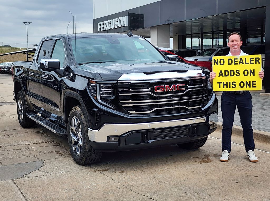 Preferred Equipment Group 4SA,10-Way Power Driver Seat Adjuster with Lumbar,Driver Memory,Power Sliding Rear Window with Rear Defogger,Front Bucket Seats,10-Way Power Passenger Seat Adjuster with Lumbar,Power Front Passenger Windows with Express Up/Down,Power Rear Windows with Express Down,Deep-Tinted Glass,Power Door Locks,Keyless Open and Start,Power Front Windows with Driver Express Up/Down,Front 40/20/40 Split-Bench Seat,Rear Wheelhouse Liners,Color-Keyed Carpeting Floor Covering,Push Button Start,Remote Vehicle Starter System,Chrome Wheel to Wheel Assist Steps,Electric Rear-Window Defogger,Front Rain-Sensing Wipers,Power Sunroof,Spray-on Pickup Bedliner with GMC Logo,Hitch Guidance,Floor-Mounted Center Console,Electronic Precision Shift,Auto-Locking Rear Differential,Chrome Header and Chrome Grille Insert Bars,3.23 Rear Axle Ratio,Safety Alert Seat,Radio: Premium GMC Infotainment Audio System,Hill Descent Control,Integrated Trailer Brake Controller,Heavy-Duty Air Filter,Wireless Charging,Heated Driver and Front Outboard Passenger Seating,Heated 2nd Row Outboard Seats,120-Volt Bed Mounted Power Outlet,120-Volt Interior Power Outlet,Auxiliary External Transmission Oil Cooler,Ventilated Driver and Front Passenger Seats,Adaptive Cruise Control,170 Amp Alternator,Dual Exhaust System,Manual Tilt-Wheel and Telescoping Steering Column,Power Rake and Telescoping Steering Column,Off-Road Suspension,Single Speed Transfer Case,2-Speed Transfer Case,20" Polished Aluminum Wheels,Skid Plates,SLT Convenience Package,GMC Pro Safety,SLT Premium Plus Package,SLT Preferred Package,Sierra Safety Plus Package,Wireless Apple CarPlay/Wireless Android Auto,Hitch View,Perforated Leather-Appointed Front Outboard Seat Trim,Buckle to Drive,IntelliBeam Automatic High Beam on/Off,Trailer Camera Provisions,Perimeter Lighting,SiriusXM with 360L Trial Subscription,2 Charge/Data USB Ports Inside Center Console,2 Type-C Charge-Only Rear USB Ports,2 Charge/Data USB Ports,Ultrasonic Front and Rear Park Assist,OnStar Services Capable,Following Distance Indicator,in-Vehicle Trailering System App,Forward Collision Alert,LED Cargo Area Lighting,Rear Cross Traffic Braking,Universal Home Remote,Wheels: 18" x 8.5" 6-Spoke Machined Aluminum,Lane Keep Assist with Lane Departure Warning,Automatic Emergency Braking,Steering Wheel Audio Controls,Front Pedestrian Braking,Rear Pedestrian Detection,Trailer Side Blind Zone Alert,Premium Bose 7-Speaker Sound System,6-Speaker Audio System Feature,Theft Deterrent System (unauthorized Entry),HD Surround Vision,HD Rear Vision Camera,Front Frame-Mounted Black Recovery Hooks,Wi-Fi Hotspot Capable,X31 Off-Road Package,X31 Hard Badge,High Capacity Suspension Package,Trailering Package,Standard Suspension Package,ProGrade Trailering System,4-Wheel Disc Brakes,Apple CarPlay/Android Auto,Emergency communication system: OnStar,AM/FM radio: SiriusXM with 360L,Auto High-beam Headlights,Front Center Armrest w/Storage,Compass,Auto-dimming Rear-View mirror,Variably intermittent wipers,Trip computer,Traction control,Tilt steering wheel,Telescoping steering wheel,Steering wheel mounted audio controls,Split folding rear seat,Speed-sensing steering,Speed control,Security system,Remote keyless entry,Rear window defroster,Rear step bumper,Rear seat center armrest,Rear reading lights,Rain sensing wipers,Radio data system,Power windows,Power steering,Power passenger seat,Power driver seat,Power door mirrors,Passenger vanity mirror,Passenger door bin,Panic alarm,Overhead console,Overhead airbag,Outside temperature display,Occupant sensing airbag,Memory seat,Low tire pressure warning,Illuminated entry,Heated steering wheel,Heated front seats,Heated door mirrors,Fully automatic headlights,Front wheel independent suspension,Front reading lights,Front fog lights,Front dual zone A/C,Front anti-roll bar,Dual front side impact airbags,Dual front impact airbags,Driver vanity mirror,Driver door bin,Delay-off headlights,Bumpers: chrome,Brake assist,Automatic temperature control,Auto-dimming door mirrors,Alloy wheels,ABS brakes,Voltmeter,Tachometer,Navigation System,Electronic Stability Control,Air Conditioning,6 Speakers
