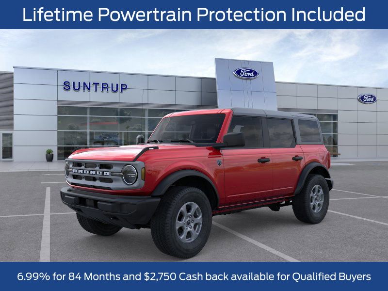 Suntrup Ford now offers Lifetime Powertrain Protection on all eligible New and Pre-Owned Vehicles. It's no secret that people are keeping their vehicles longer and driving them farther than ever before. Because we want you to be our customer for life, our Ford dealership in St. Louis, MO is proud to provide Lifetime Powertrain Protection on our vehicles at no additional cost. We want you to have the peace of mind that comes from knowing you are covered for the cost of critical mechanical breakdowns. See dealer for details. $8,237 off MSRP! 2025 Ford Bronco Badlands 4-Wheel Disc Brakes, 4.7 Axle Ratio, 4.7 Final Drive Ratio, 7 Speakers, ABS brakes, Air Conditioning, Alloy wheels, AM/FM radio: SiriusXM with 360L, AM/FM Stereo, Auto High-beam Headlights, Auto-dimming Rear-View mirror, Black Appearance Package, Black Molded-In-Color Door Handles, Black Molded-In-Color Fender Flares, Black Molded-In-Color Sideview Mirror Caps, Black-Painted Molded-In-Color Grille, Brake assist, Bronco-Branded Console Cupholder, Compass, Connected Navigation, Delay-off headlights, Door Storage Bags, Driver door bin, Driver vanity mirror, Dual front impact airbags, Dual front side impact airbags, Electronic Stability Control, Emergency communication system: 911 Assist, Equipment Group 334A Lux Package, Exterior Parking Camera Rear, Ford Integrated Tether System (FITS) Accessory Pkg, Ford Performance Heavy-Duty Modular Front Bumper, Front & Rear Floor Liners w/o Carpet Floor Mats, Front anti-roll bar, Front Bucket Seats, Front Center Armrest, Front fog lights, Front License Plate Bracket, Front reading lights, Front wheel independent suspension, Fully automatic headlights, Hard Top Sound Deadening Headliner, Heated door mirrors, Heated front seats, Heated steering wheel, High Clearance Fender Flares, High Clearance Suspension, Illuminated entry, Integrated roll-over protection, Leather Shift Knob, Low tire pressure warning, Marine Grade Vinyl Heated Bucket Seats, Occupant sensing airbag, Outside temperature display, Overhead airbag, Overhead console, Panic alarm, Passenger door bin, Passenger vanity mirror, Position-Sensitive Bilstein Shock Absorbers, Power door mirrors, Power steering, Power windows, Radio data system, Rear-Window Defroster & Washer, Remote keyless entry, Sasquatch Package, Security system, Shadow Black Painted Hard Top, SiriusXM w/360L, Speed control, Split folding rear seat, Steering wheel mounted audio controls, SYNC 4, Tachometer, Telescoping steering wheel, Tilt steering wheel, Traction control, Trip computer, Variably intermittent wipers, Voltmeter. Ruby Red Metallic 4WD 10-Speed Automatic 2.7L EcoBoost V6