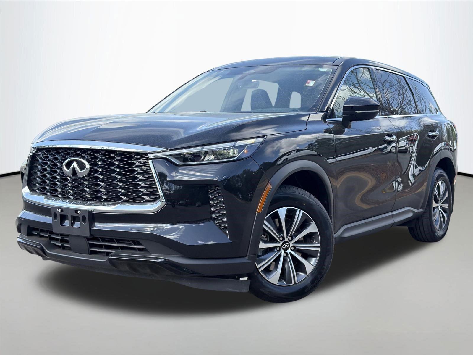 Infiniti, was launched in 1989 in the United States. It quickly gained recognition for its focus on driver-centric design, performance luxury, and a high level of customer service exemplified by the Total Ownership Experience program. The brand's history is marked by innovations in engine technology and safety features, like the acclaimed VQ series V6 engines and pioneering driver-assist systems such as Intelligent Cruise Control, RearView Monitor, Lane Departure Warning, and Blind Spot Intervention. Throughout the 1990s and 2000s, Infiniti continued to innovate, introducing the highly acclaimed VQ series V6 engines in 1995, considered among the world's best for over a decade. The brand also pioneered numerous driver-assist and safety features, including Intelligent Cruise Control, RearView Monitor, Voice Recognition, Lane Departure Warning, Lane Departure Prevention, Around View Monitor, and Blind Spot Intervention, among others. Notable models like the G35 sport sedan and FX crossover further cemented Infiniti's position in the luxury market. Today, Infiniti continues to build on this legacy with models like the QX80, Q50, QX50, QX55, and QX60, emphasizing its Modern Japanese Luxury design philosophy and commitment to technological advancement. This New 2026 INFINITI QX60 SPORT, is Graphite Shadow/Black Obsidian in color with an Graphite interior. Stock Number TC339159 Important Package and Feature Information Dark Cargo Package ($440 value)Black Rear Bumper FilmCargo BlocksCargo MatMedic KitCargo Net Convenience Adaptive cruise control with traffic stop-go. Set it and forget it. Road trips used to be stressful. Cruise control only managed speed, but not distance or safety. Now, with Adaptive cruise control with traffic stop-go, simply set your desired speed and let sensor technology maintain a safe distance between you and the vehicle ahead. It's stop/go feature automatically brings the vehicle to a stop if traffic stops and resumes distance pacing cruise when traffic starts to move again. Adaptive cruise control with traffic stop-go; your ultimate co-pilot.Safety and Security Hands-on cruise control. Set it and forget it. Road trips used to be stressful. Cruise control only managed speed, but not distance or safety. Now, with hands-on cruise control, simply set your desired speed and let sensor technology maintain a safe distance between you and surrounding vehicles. It slows you down; speeds you up and even keeps you in your own lane. Meet your ultimate co-pilot with hands-on cruise control. Forward collision mitigation - Forward thinking. You look away for just a second and suddenly the vehicle in front of you has stopped. That's when the forward collision mitigation system comes to life. When it senses an impending impact, it will activate a combination of features to help prevent or reduce the severity of an accident. Forward collision mitigation is always looking ahead. Pedestrian impact prevention - An extra step toward safety. Pedestrians don't always stop, look, and listen, but with Pedestrian Impact Prevention, your vehicle is equipped to better see them and avoid them. This system constantly monitors the road ahead to identify and track pedestrians. It projects that image to an interior display screen, AND should an impact become likely, Pedestrian impact prevention takes steps to avoid a collision. Rear camera - Watching your back! The rear camera helps you see obstacles and hazards you otherwise couldn't by showing enhanced images of what is behind you. The rear camera is an extra set of eyes that's both convenient and safe. Rear collision mitigation - It has your back. Rear collision mitigation uses sensors to monitor the area behind you. If it senses an impending crash, it activates certain features to help prevent a collision or reduce the severity of it. Put your worries behind you with rear collision mitigation. Lane departure prevention - Keep it between the lines. It only takes a moment of inattention for your vehicle to drift. With lane departure prevention, your vehicle takes corrective action to help you avoid unintentionally moving out of your lane. Lane departure prevention is an extra level of safety for you and those around you. Brake assist - Stop right there. Something jumps out into the middle of the road and you need to stop now! With brake assist, you will. It uses the speed of the brake pedal's travel to sense panic braking, then applies all available power to boost your stopping power. Brake assist can stop the accident before it is one.Technology and Telematics Apple CarPlay/Android Auto smart device wireless mirroring Mobile hotspot - WiFi on the fly. Connect your devices to the Internet through your vehicle's private mobile hotspot and take the internet wherever your journey takes you, without eating up your data allowance. Find the hotspot with mobile hotspot. GRAPHITE SHADOW/BLACK OBSIDIAN, DUSK BLUE, TAILORFIT-APPOINTED SEATING SURFACES, [C03] 50 STATE EMISSIONS, [B10] SPLASH GUARDS, [E06] 2-TONE PAINT (E06), [M93] DARK CARGO PACKAGE, [N94] INFINITI RADIANT DARK ILLUMINATED KICK PLATES, [N96] INFINITI RADIANT DARK ILLUM CARGO SCUFF PLATES, [N92] PANORAMIC ILLUMINATED HEADLINER, [L12] CARPETED FLOOR MATS W/CAPTAINS CHAIRS ON 3RD ROW TRAY, [B94] BLACK ROOF RAIL CROSSBARS, [S55] LITERATURE KIT As your local Infiniti Dealer in Matthews, NC, we're dedicated to providing an exceptional sales experience and an even more focused service experience not just to the Matthews community, but also to customers in surrounding cities and towns. The dealership proudly serves: Charlotte, Mint Hill, Stallings, Monroe, Indian Trail, Hemby Ridge, Lake Park, Weddington, Wesley Chapel, Gastonia, Waxhaw, Lancaster, Rock Hill, Mooresville, Kannapolis, Huntersville, and Lake Norman. Whether assistance is needed with a new vehicle, Certified Pre-Owned options, standard used vehicle purchase, routine maintenance, or more extensive repairs, the experienced team is ready to 