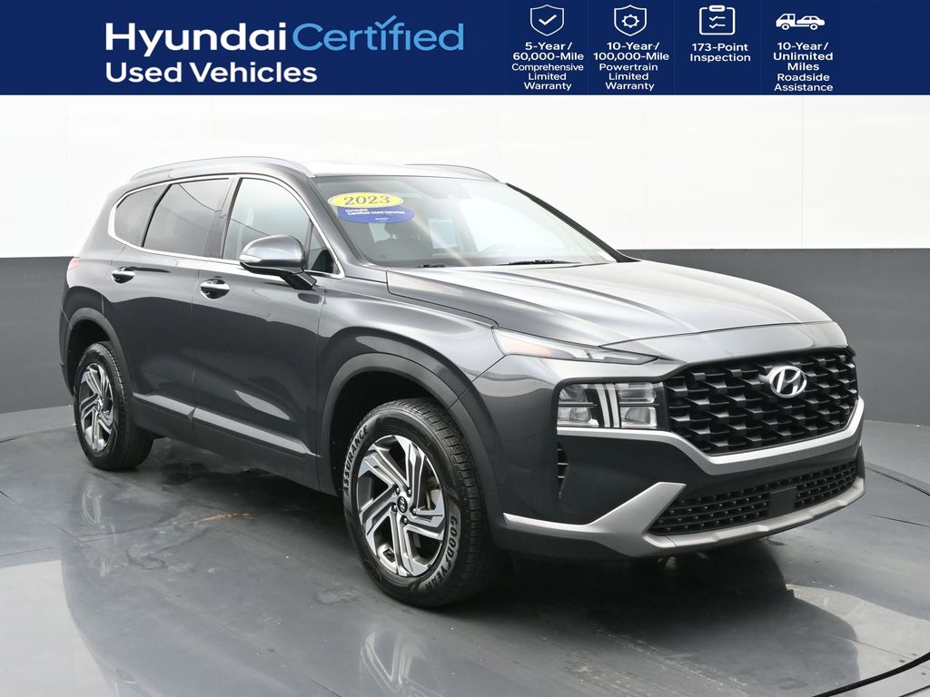 Option Group 01,6 Speakers,AM/FM radio: SiriusXM,Radio: AM/FM/HD Display Audio,Air Conditioning,Automatic temperature control,Front dual zone A/C,Rear window defroster,Power driver seat,Power steering,Power windows,Remote keyless entry,Steering wheel mounted audio controls,Four wheel independent suspension,Speed-sensing steering,Traction control,4-Wheel Disc Brakes,ABS brakes,Dual front impact airbags,Dual front side impact airbags,Emergency communication system,Front anti-roll bar,Knee airbag,Low tire pressure warning,Occupant sensing airbag,Overhead airbag,Rear anti-roll bar,Rear side impact airbag,Power Liftgate,Brake assist,Electronic Stability Control,Exterior Parking Camera Rear,Auto High-beam Headlights,Delay-off headlights,Fully automatic headlights,First Aid Kit,Panic alarm,Security system,Speed control,Bumpers: body-color,Heated door mirrors,Power door mirrors,Spoiler,Turn signal indicator mirrors,All Season Fitted Liners,Apple CarPlay & Android Auto,Carpeted Floor Mats,Driver door bin,Driver vanity mirror,Front reading lights,Illuminated entry,Leather steering wheel,Outside temperature display,Overhead console,Passenger vanity mirror,Rear seat center armrest,Tachometer,Telescoping steering wheel,Tilt steering wheel,Trip computer,3rd row seats: bench,Front Bucket Seats,Front Center Armrest,H-Tex Leatherette Seat Trim,Heated Front Bucket Seats,Heated front seats,Split folding rear seat,Cargo Blocks,Cargo Cover/Screen,Cargo Net,Passenger door bin,18" x 7.5J Alloy Wheels,Alloy wheels,Rear window wiper,Variably intermittent wipers,Lifetime Powertrain Warranty,Backup Camera,Bluetooth,Push Button Start,Third Row Seats,Our listed price includes financing through Hyundai Motor Finance at standard rates.