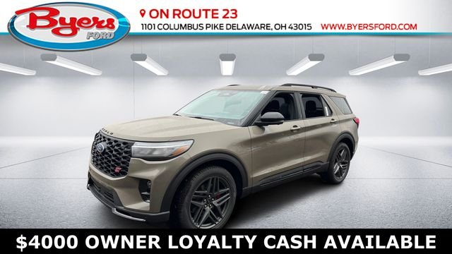 $4,228 off MSRP! New Price! Space White Metallic 2026 Ford Explorer ST-Line 4WD 10-Speed Automatic 2.3L EcoBoost I-4 This Ford Explorer at Byers Ford has many features and is well equipped including, Collision Avoidance System, Collision Warning System, 360 degree Camera, Adaptive Cruise Control, Heated Seats, Blind-Spot Monitors, Lane Keeping Assist, Adaptive Headlights, Touchscreen Controls, Backup Camera, Keyless Access with Push Button Start, Drowsiness Alert, Automatic Headlights, Apple CarPlay, Android Auto, Bluetooth Hands-Free, Voice Recognition, Wi-Fi Hotspot, Ford SYNC, Heated Mirrors, Heated Steering Wheel, HID HEADLIGHTS, iPod/MP3 CONNECT, Rear Backup Sensors, Remote Start, Third Row Seating, Tow Package, Multi Zone Climate Control, 4WD, 10 Speakers, 3rd row seats: bench, ABS brakes, AM/FM radio: SiriusXM with 360L, BlueCruise Hardware, Cruise Control, Dual front impact airbags, Dual front side impact airbags, Electronic Stability Control, Equipment Group 300A Standard Package, Four wheel independent suspension, Front dual zone A/C, Front fog lights, Fully automatic headlights, Garage door transmitter, Knee airbag, Leather steering wheel, Low tire pressure warning, Navigation System, Power door mirrors, Power driver seat, Power Liftgate, Power passenger seat, Rear air conditioning, Security system, Telescoping steering wheel, Variably intermittent wipers, Wheels: 20 Ebony-Painted Machined Aluminum. 20/27 City/Highway MPG Byers Auto is family owned and operated and has been serving Columbus, Dublin, Lewis Center, Marysville, Powell, Westerville, and all of Central Ohio since 1897. Stop by our dealership located off State Route 23 in Delaware. We have a committed and knowledgeable staff that can help you with all of your automotive needs. Pricing does not include tax, title and $387 document fees. Incentives are based on zip code 43015 and may not be offered in all markets. Online pricing may require Ford Motor Credit financing and other financial stipulations to be met. Special rates may be in lieu of customer cash or retail rebates. Contact Byers Ford for more information. Price includes: $3500 - Retail Customer Cash. Exp. 04/30/2026
