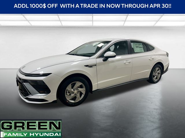 Serenity White 2026 Hyundai Sonata SEL Sport FWD 8-Speed Automatic I4 ***FRONT, FRONT SIDE, SIDE CURTAIN, & REAR SIDE AIRBAGS***, ***LANE KEEPING ASSIST***, ***LANE FOLLOWING ASSIST***, ***REAR CROSS TRAFFIC COLLISION-AVOIDANCE ASSIST***, ***REAR VIEW CAMERA***, 18" x 7.5J Aluminum Alloy Wheels, Active Cruise Control, AM/FM radio: SiriusXM, Apple CarPlay & Android Auto, Auto High-beam Headlights, Automatic temperature control, Bumpers: body-color, Cargo Tray, Carpeted Floor Mats, Delay-off headlights, Electronic Stability Control, Exterior Parking Camera Rear, First Aid Kit, Four wheel independent suspension, Fully automatic headlights, Heated door mirrors, Heated Front Bucket Seats, Leather steering wheel, Panic alarm, Power driver seat, Premium Cloth Seating Surfaces, Radio: AM/FM/HD/MP3/SiriusXM, Remote keyless entry, Security system, Speed-sensing steering, Speed-Sensitive Wipers, Telescoping steering wheel, Tilt steering wheel. Shop with confidence! Green Family Hyundai has a 4.6 google rating with over 700 reviews! Green Family Hyundai has the largest selection of new Hyundai vehicles within 50 miles but if you don't see what you are looking for give us a call and we will find it for you. When you "Go Green" you will work with a knowledgeable and professional sales associate dedicated to making your car buying experience exceptional. Plus every new Hyundai comes with America's Best Warranty. 5-year/60,000-mile New Vehicle Warranty 10-year/100,000-mile Powertrain Warranty 7-year/Unlimited-mile Anti-perforation Warranty 5-year/Unlimited-mile Roadside Assistance (See Dealer For Details) 25/36 City/Highway MPG Price includes: MUST FINANCE THROUGH HMF DEALER CHOICE PROGRAM- NOT COMPATIBLE WITH LOW APR OR 0% PROMOTION