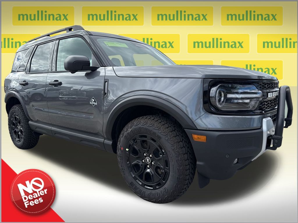 2025 Ford Bronco Sport Outer Banks 4x4, Carbonized Gray Metallic, 1.5L EcoBoost, 8-Speed Automatic, SYNC 4 with 13.2" Touchscreen, Sasquatch Outer Banks Package, P235/65R17 Tires, 17" Black-Painted Aluminum Wheels, Rubberized 2nd Row Seat Backs, Outer Banks Tech Package, HD Radio, LED Headlamps w/ Signature Lighting, LED Fog Lamps, Rain-Sensing Wipers, Heated Power Mirrors, Liftgate w/ Flip-Up Glass, Platinum Blue Premium Interior Trim, Heated Front Seats, 8-Way Power Driver / 6-Way Power Passenger Seat, Dual-Zone Auto Climate Control, Premium Wrapped Heated Steering Wheel, Digital Instrument Cluster, Flood Light Liftgate, Smart-Charging USB Ports, Remote Start, Intelligent Access w/ Push-Button Start, Roof-Rack Side Rails, Perimeter Alarm, SecuriLock Anti-Theft, AdvanceTrac with RSC, SOS Post-Crash Alert System. At Mullinax Ford we offer customers Upfront pricing and NEVER charge a Dealer Fee. You'll always get the best price instantly, because it's right there on the windshield of your chosen vehicle. There's no hassle, and our Upfront® pricing is completely transparent. At some dealers, you'll hear about add-on fees like Dealer Fees, service fees, prep fees, administrative fees and handling fees. There's none of that at Mullinax Ford of West Palm Beach. Instead, we save our clients as much as $1000 that they'd be forced to spend elsewhere. We also offer you comprehensive six-store advantage. What does that mean? Between all of our dealerships, you have thousands of vehicles to choose from, and we have the largest inventory of new Ford models in West Palm Beach. If you want a new Ford, there's only one place to shop in Palm Beach -- Mullinax Ford. We want to make sure you're completely satisfied with your experience at Mullinax Ford. Recent Arrival! 25/30 City/Highway MPG Price includes: $2500 - Retail Customer Cash. Exp. 04/30/2026 $500 - FORD OWNER LOYALTY. Exp. 04/30/2026 $1,000 - Clearance. Exp. 12/31/2026
