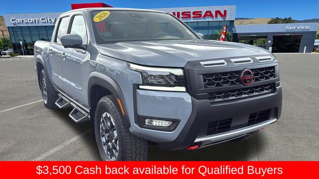 * Get Tires and Oil for Life with every new Nissan! (see dealer for details) * Save money on sales tax over buying in Reno! This 2026 Nissan Frontier SV is the perfect blend of rugged capability and modern convenience. With its powerful 3.8L V6 engine, advanced 4WD system, and impressive towing capacity, this truck is ready to tackle any adventure. But don't let its workhorse nature fool you the Frontier SV is also packed with premium features that elevate your driving experience. Key highlights include: All-Weather Content Package Tow Package Wireless Apple CarPlay/Wireless Android Auto Heated Leather Steering Wheel Heated Front Seats Premium Cloth Seat Trim 17" Alloy Wheels The Frontier's impressive fuel efficiency, with an EPA-estimated 18 MPG in the city and 23 MPG on the highway, means you can go further between fill-ups. And with the available Remote Engine Starter, you can have your truck warmed up and ready to go on those chilly mornings. Safety is also a top priority, with features like Blind Spot Warning, Brake Assist, and Electronic Stability Control keeping you and your loved ones protected on the road. The advanced airbag system and advanced safety technologies provide added peace of mind. Whether you're tackling tough terrain, hauling heavy loads, or simply enjoying the daily commute, this 2026 Nissan Frontier SV is the perfect companion. With its uncompromising blend of power, capability, and premium amenities, it's a truck that's built to impress. We may be the newest and fastest-growing franchise dealership in Nevada, but that hasn't stopped us from recruiting an automotive dream team. Our staff includes long-time Nissan product experts on both our sales and management teams. Our goal is to make buying your car a fun and easy experience. Se habla español en cada parte de la empresa: ventas, finanzas, reparación y en la oficina. Si prefiere visitar este sitio en español, seleccione "En Español" al pie de la página. Price does not include Tax, Title, License or Dealer Documentation fee. See Dealer for Details. $3500 - Nissan Customer Cash. Exp. 05/04/2026