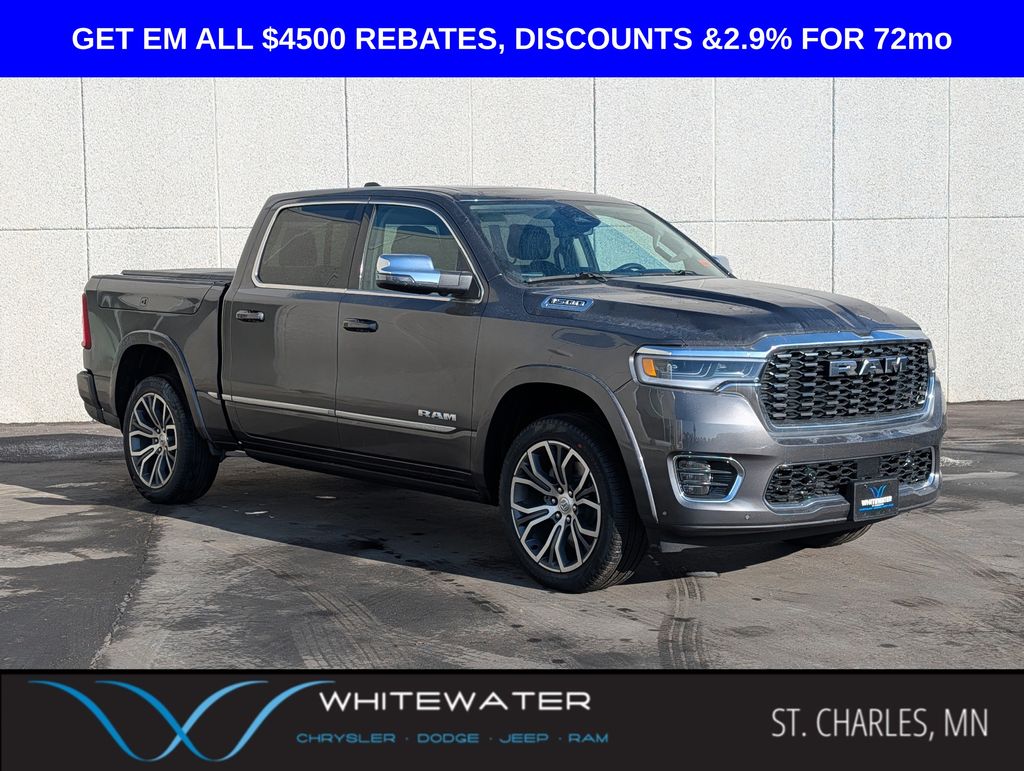 GPS Navigation,Big Horn Level 2 Plus Equipment Group,Night Edition,Quick Order Package 2UZ Big Horn,6 Speakers,9 Alpine Speakers with Subwoofer,AM/FM radio: SiriusXM,GPS Antenna Input,HD Radio,Radio data system,Radio: Uconnect 5 Navigation with 12.0" Display,Radio: Uconnect 5 with 8.4" Display,SiriusXM with 360L,Air Conditioning,Air Conditioning ATC with Dual Zone Control,Rear window defroster,115-Volt Auxiliary Front Power Outlet,115V Auxiliary Rear Power Outlet,Exterior 115V AC Outlet,Power steering,Power windows,Rear 60/40 Folding Seat,Rear Folding Seat,Rear Power Sliding Window,Remote keyless entry,Universal Garage Door Opener,Traction control,4-Wheel Disc Brakes,ABS brakes,Adaptive Steering System,Dual front impact airbags,Dual front side impact airbags,Front anti-roll bar,Low tire pressure warning,Occupant sensing airbag,Overhead airbag,Painted Front Bumper,Painted Rear Bumper,Rear anti-roll bar,Remote Start System,Brake assist,Electronic Stability Control,ParkView Rear Back-Up Camera,Delay-off headlights,Front fog lights,Fully automatic headlights,LED Tail Lamps,Emergency Vehicle Alert System (EVAS),Panic alarm,Security system,Speed control,Anti-Spin Differential Rear Axle,Auto High Beam Headlamp Control,Auto Power-Folding Mirrors,Black Exterior Mirrors,Black Exterior Truck Badging,Body Color Grille-Surround,Bumpers: chrome,Dampened Tailgate,Exterior Mirrors Courtesy Lamps,Exterior Mirrors with Heating Element,Exterior Mirrors with Supplemental Signals,Forward and Reverse Utility Lights,Front License Plate Bracket,Gloss Black Nostrils/Mic Black Grille,Heated door mirrors,LED Bed Lighting,Mirror Running Lights,MOPAR Deployable Bed Step,MOPAR Spray in Bedliner,Power Adjust Mirrors,Power door mirrors,Power Heated Folding Telescopic Mirrors,Power Telescoping Mirrors,Power-Adjustable Convex Aux Mirrors,Rear step bumper,Rear Wheelhouse Liners,Red Tail Lamp Bezels,Turn signal indicator mirrors,12" Touchscreen Display,2nd Row in Floor Storage Bins,400W Inverter,4G LTE Wi-Fi Hot Spot,Active Lane Management System,Alexa Built-in,Apple CarPlay,Apple CarPlay/Android Auto,Auto-Dimming Rear-View Mirror,Black Interior Accents,Blind Spot and Cross Path Detection,Center Stop Lamp with Cargo View Camera,Cluster 7.0" TFT Color Display,Compass,Connected Travel and Traffic Services,Connectivity - US/Canada,Disassociated Touchscreen Display,Driver door bin,Drowsy Driver Detection,Dual Glove Boxes,Dual Wireless Charging Pad,Foam Bottle Insert (door Trim Panel),Folding Flat Load Floor Storage,Footwell Courtesy Lamp,For Details, Visit DriveUconnect.com,For More Info, Call 800-643-2112,Front reading lights,Full Length Upgraded Floor Console,Global Telematics Box Module,Glove Box Lamp,Google Android Auto,Heated Steering Wheel,Illuminated entry,Integrated Voice Command with Bluetooth,Locking Lower Glove Box,Luxury Steering Wheel,Media Hub with 2 Charge Only USBs,MOPAR Front and Rear Rubber Floor Mats,MOPAR Trailer Camera Wiring with No Camera,Off-Road Info Pages,Outside temperature display,Overhead console,Passenger vanity mirror,Power Adjustable Pedals,Rear Dome with on/Off Switch Lamp,Rear seat center armrest,Remote USB Port - Charge Only,Selectable Tire Fill Alert,SiriusXM Radio Service,Steering Wheel Mounted Audio Controls,Sun Visors with Illuminated Vanity Mirrors,Surround View Camera System,Tachometer,Tilt steering wheel,Traffic Sign Recognition,Trip computer,Voltmeter,2 Way Rear Headrest Seat,4 Way Front Headrests,40/20/40 Split Bench Seat,Bucket Seats,Cloth 40/20/40 Bench Seat,Front Armrest with Cupholders,Heated Front Seats,Manual Adjust 4-Way Driver Seat,Manual Adjust 4-Way Front Passenger Seat,Power 2-Way Driver Lumbar Adjust,Power Adjust 8-Way Driver Seat,Premium Cloth Bucket Seats,Front Center Armrest w/Storage,Front Seat Back Map Pockets,Passenger door bin,Storage Tray,Trailer Reverse Guidance,Trailer Tire Pressure Monitoring System,Trailer Tow Pages,Alloy wheels,Black Wheel Center Hub,Center Hub,Wheels: 18" x 8.0" Polished Aluminum,Wheels: 20" x 8.0" Black Painted Aluminum,Rain Sensitive Windshield Wipers,Variably intermittent wipers,3.73 Axle Ratio