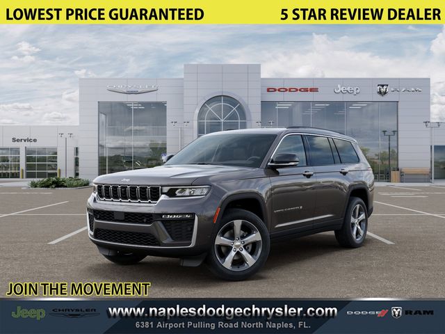 Elevate your driving experience with this exceptional 2025 Jeep Grand Cherokee L Limited. Boasting a striking Gray exterior and a meticulously crafted interior, this SUV is a true testament to Jeep's commitment to quality and innovation. Tailored to your lifestyle, this Grand Cherokee L Limited offers an impressive array of features, including: - LUXURY TECH GROUP II - BLACK APPEARANCE PACKAGE - DUAL PANE PANORAMIC SUNROOF - Interior Rear Facing Camera - Navigation System - Power Tilt/Telescope Steering Column - Passive Entry - Front/Rear Doors, Liftgate - Auto-Dimming Exterior Driver Mirror - Gloss Black Exterior Accents - Rear Back Up Camera Washer - 2nd Row Manual Window Shades - Capri Leatherette w/Axis II Seats - Integrated Off-Road Camera - Intersection Collision Assist System - Memory Steering Column - ParkSense Front/Rear Park Assist w/Stop - Rearview Autodim Digital Display Mirror - Surround View Camera System - Wireless Charging Pad - Ventilated Front Seats - Wheels: 20" x 8.5" Gloss Black Painted Aluminum - Rain Sensitive Windshield Wipers Powered by a robust 3.6L V6 24V VVT engine paired with an 8-Speed Automatic transmission, this Grand Cherokee L Limited delivers an exceptional balance of power and efficiency, with an impressive 19 city / 26 highway MPG. Step inside and experience the unparalleled comfort and convenience of this meticulously crafted SUV. From the spacious and versatile cabin to the advanced technology features, every detail has been thoughtfully designed to enhance your driving experience. Whether you're embarking on a family road trip or navigating the urban landscape, this 2025 Jeep Grand Cherokee L Limited is the perfect companion. Its impressive capabilities, refined styling, and comprehensive suite of features make it an exceptional choice for discerning drivers like yourself. We invite you to visit our showroom and take this remarkable SUV for a test drive. Experience the difference for yourself and discover why the 2025 Jeep Grand Cherokee L Limited is the perfect addition to your lifestyle. Naples Chrysler Dodge Jeep Ram proudly serves drivers throughout Naples and Southwest Florida, including Fort Myers, Cape Coral, Estero, Bonita Springs, Immokalee, Punta Gorda, Port Charlotte, Marco Island, and Lehigh Acres. Conveniently located in Naples, we are a trusted destination for customers across Lee and Collier County seeking competitive pricing, transparent financing, and strong trade-in opportunities. We offer an extensive selection of new and pre-owned vehicles along with flexible lease options and professional automotive service to support your ownership experience. Every purchase includes the Naples Premium Protect Plus Package for added value and protection. Call 239-695-7719 or visit 6381 Airport-Pulling Rd, Naples, FL 34109. Dealer not responsible for errors. Prices include dealer-assisted financing. See dealer for details.