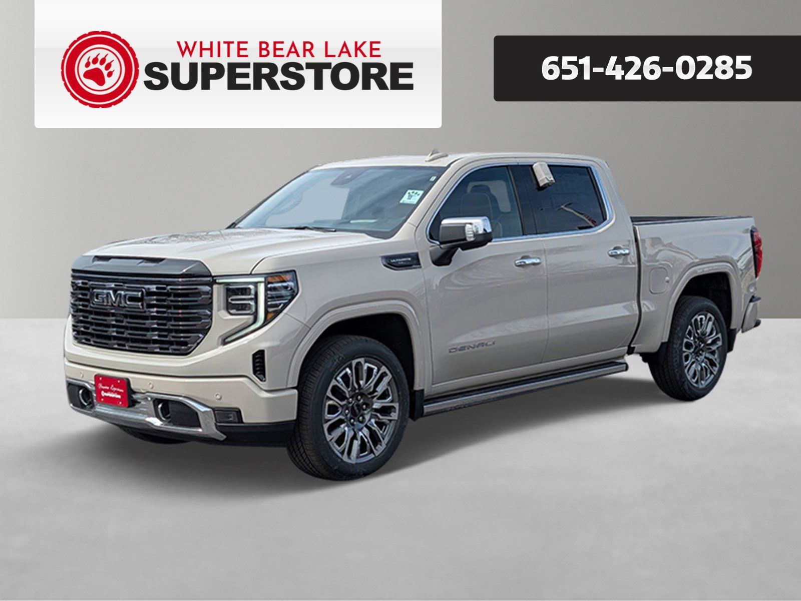 White Bear Lake Superstore is proud to offer this great 2026 GMC Sierra 1500 AT4 in Sterling Metallic, beautifully equipped with AT4 Preferred Package (Power Sliding Rear Window with Rear Defogger and Universal Home Remote), Preferred Equipment Group 4SB (120-Volt Bed Mounted Power Outlet, 120-Volt Interior Power Outlet, 2 Charge/Data USB Ports Inside Center Console, 2 Type-C Charge-Only Rear USB Ports, 2 USB Ports, 220 Amp Alternator, Auto-Locking Rear Differential, Black Chrome Grille Insert Bars, Color-Keyed Carpeting Floor Covering, Deep-Tinted Glass, Electric Rear-Window Defogger, Floor-Mounted Center Console, Front Premium Floor Liners with Removable Carpet Insert, Front Rain-Sensing Wipers, HD Surround Vision, Heated 2nd Row Outboard Seats, Heated Driver and Front Outboard Passenger Seating, Heavy-Duty Air Filter, Hill Descent Control, Hitch View, in-Vehicle Trailering System App, Integrated Trailer Brake Controller, Keyless Open and Start, LED Cargo Area Lighting, Off-Road Suspension, OnStar Services Capable, Perimeter Lighting, Power Door Locks, Power Front Passenger Windows with Express Up/Down, Power Front Windows with Driver Express Up/Down, Power Rake and Telescoping Steering Column, Power Rear Windows with Express Down, Premium Bose 7-Speaker Sound System, Push Button Start, Rear Cross Traffic Braking, Rear Pedestrian Detection, Rear Premium Floor Liners with Removable Carpet Insert, Rear Wheelhouse Liners, Red Recovery Hooks, Remote Vehicle Starter System, SiriusXM with 360L Trial Subscription, Spray-on Pickup Bedliner with GMC Logo, Steering Wheel Audio Controls, Theft Deterrent System (unauthorized Entry), Trailer Camera Provisions, Trailer Side Blind Zone Alert, Ultrasonic Front and Rear Park Assist, Ventilated Driver and Front Passenger Seats, Wheels: 20" x 9" Machined Aluminum, Wi-Fi Hotspot Capable, and Wireless Charging), Technology Package (Bed View Camera, Multicolor 15" Diagonal Head-Up Display, and Rear Camera Mirror), Trailering Package (Hitch Guidance), 10-Way Power Driver Seat Adjuster with Lumbar, 10-Way Power Passenger Seat Adjuster with Lumbar, 170 Amp Alternator, 3.23 Rear Axle Ratio, 4-Wheel Disc Brakes, 7 Speakers, ABS brakes, Air Conditioning, Alloy wheels, AM/FM radio: SiriusXM with 360L, Apple CarPlay/Android Auto, Auto High-beam Headlights, Auto-dimming door mirrors, Auto-dimming Rear-View mirror, Automatic Emergency Braking, Automatic temperature control, Auxiliary External Transmission Oil Cooler, Block heater, Brake assist, Buckle to Drive, Bumpers: body-color, Compass, Delay-off headlights, Driver door bin, Driver Memory, Driver vanity mirror, Dual Active Exhaust, Dual front impact airbags, Dual front side impact airbags, Electronic Stability Control, Emergency communication system: OnStar, Engine Block Heater, External Engine Oil Cooling, Following Distance Indicator, Forward Collision Alert, Front anti-roll bar, Front Bucket Seats, Front Center Armrest, Front dual zone A/C, Front fog lights, Front License Plate Kit, Front Pedestrian Braking, Front reading lights, Front wheel independent suspension, Fully automatic headlights, Heated door mirrors, Heated front seats, Heated rear seats, Heated steering wheel, Illuminated entry, IntelliBeam Automatic High Beam on/Off, Lane Keep Assist with Lane Departure Warning, Low tire pressure warning, Memory seat, Navigation System, Occupant sensing airbag, Outside temperature display, Overhead airbag, Overhead console, Panic alarm, Passenger door bin, Passenger vanity mirror, Perforated Front Leather Seat Trim, Power door mirrors, Power driver seat, Power passenger seat, Power steering, Power Sunroof, Power windows, Radio data system, Radio: Premium GMC Infotainment Audio System, Rain sensing wipers, Rear reading lights, Rear seat center armrest, Rear step bumper, Rear window defroster, Remote keyless entry, Safety Alert Seat, Security system, Speed control, Speed-sensing steering, Split folding rear seat, Steering wheel mounted audio control
