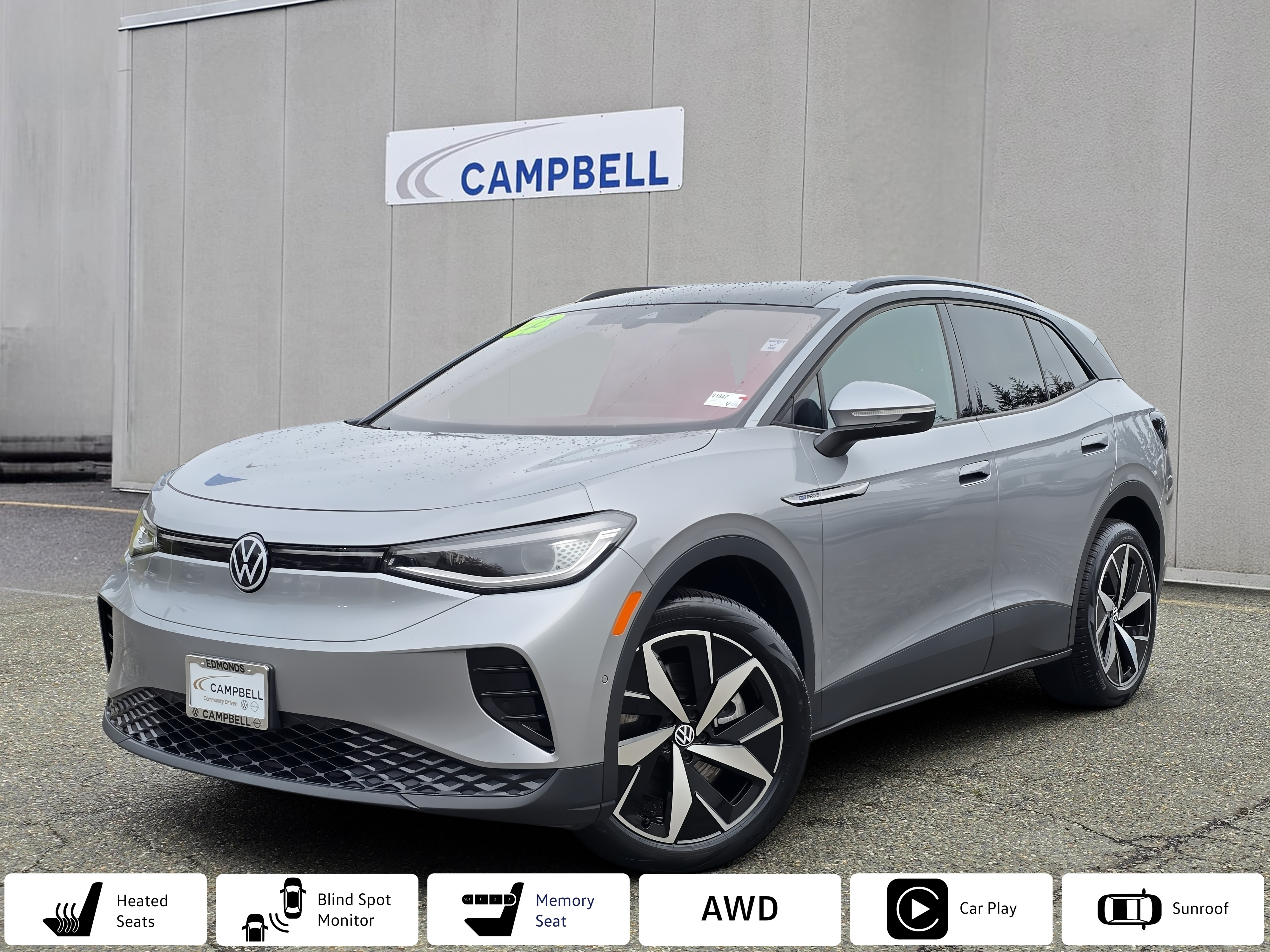 Volkswagen ID.4 Pro S AWD Electric Range 260 Miles.COME SEE THE LARGEST SELECTION OF PREOWNED VW ID.4's on the West Coast! Over 40 on Sale Now!Recent Arrival! Odometer is 8936 miles below market average! Located in Edmonds across from Costco on HWY 99. Our community involvement is centered on taking care of the basic needs of people who would be hard pressed to help themselves or in other words 'helping those without a voice'. Please visit us today and help support our efforts in providing a better community for those in need.