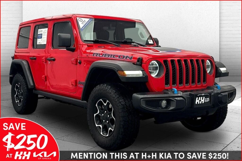 This 2021 Jeep Wrangler 4xe Unlimited Rubicon, has a Firecracker Red Clearcoat exterior and an Black interior color. 43,650 miles. Stock Number J06055A. You can connect with us by calling (402) 331-9100.