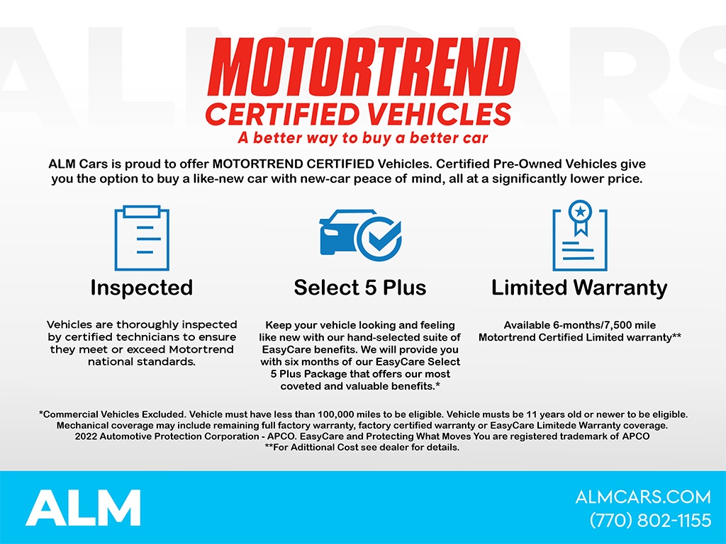 Pre-Owned Vehicles Pre-owned vehicle pricing does not include dealer documentation fees or Electronic Filing Fees. Prices also exclude tax, tag, title, and lemon law fees. Optional MotorTrend Certified pricing ($1,995 for vehicles $50,000 and less, $2,995 for vehicles $50,001 and higher) is not included in the vehicle prices shown. All advertised prices expire at midnight on the day of posting. While great effort is made to ensure the accuracy of the information on this site, errors may occur. Please verify all information with a customer service representative. New Vehicles New vehicle pricing does not include dealer documentation fees or Electronic Filing Fees. Prices also exclude tax, tag, title, and lemon law fees. Optional ALM VIP Club pricing of $1,295 is not included in the vehicle prices shown. All advertised prices expire at midnight on the day of posting. While great effort is made to ensure the accuracy of the information on this site, errors may occur. Please verify all information with a customer service representative.
