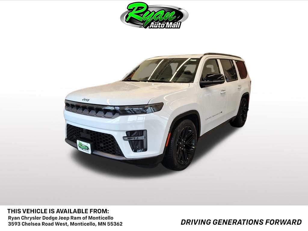 Experience uncompromising luxury, commanding power, and advanced technology in the 2026 Grand Wagoneer Summit Obsidian 4x4, now available at Ryan Chrysler Dodge Jeep Ram in Monticello, MN. Designed for drivers across Wright County and the greater Twin Cities area, this full-size premium SUV delivers a refined presence on city streets and confident capability for long-distance travel through Minnesotas changing seasons. Under the hood, a high-output twin-turbocharged engine paired with a smooth-shifting automatic transmission and an advanced four-wheel-drive system provides strong, effortless performance and confident traction on wet roads, snow, and gravel. Adaptive air suspension enhances ride comfort and stability, while a suite of advanced safety and driver-assist technologies such as adaptive cruise control, lane-keeping assist, blind-spot monitoring, forward collision warning with active braking, surround-view camera technology, and front and rear park assist help add confidence to every drive. The Summit Obsidian cabin sets a new standard for premium craftsmanship with supple leather seating, genuine metal and wood accents, heated and ventilated front seats, heated rear seats, and a tri-zone automatic climate control system for personalized comfort in all three rows. The expansive digital cockpit includes a high-resolution digital instrument cluster, an intuitive Uconnect infotainment system with a large central touchscreen, wireless smartphone integration, and a premium audio system that transforms every journey into a first-class experience. This Grand Wagoneer makes a bold statement with the Obsidian Appearance Package, featuring striking 22-inch painted black wheels with gloss-black inserts and exclusive black chiseled metal interior accents for a modern, performance-inspired look. The Premium Group III enhances luxury and convenience with ventilated second-row seats, a front passenger interactive display, a digital rear-view mirror, a reversible cargo mat, and a foldable cargo shade to adapt the spacious interior for both passengers and gear. With its commanding design, cutting-edge technology, and exceptional comfort, the 2026 Grand Wagoneer Summit Obsidian 4x4 is a premier choice for families and professionals in Monticello who demand the very best in a luxury SUV. Contact us for availability and a test drive today. Buy with confidence at Ryan Auto Mall. With over 22,500 reviews, 9 GM Mark of Excellence awards, and 65 MN DealerRater Dealer of the Year honors, our reputation is proven. Pricing includes all unconditional manufacturer rebates; tax, title, license, and a $350 doc fee are additional. Every vehicle is pre-fitted with PULSE, our rear-end collision deterrent system, available for just $399. Visit us at 3593 Chelsea Rd West, Monticello, MN 55362 or call 763-314-4498 to schedule your test drive and experience the Ryan difference.