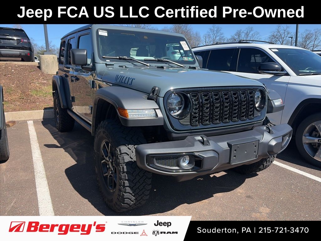 The 2025 Jeep Wrangler Sahara 4xe is a remarkable off-road SUV that combines the iconic Wrangler design with advanced hybrid technology. This certified pre-owned model is an exceptional opportunity to own a capable and versatile vehicle that can tackle any adventure with confidence. Boasting a comprehensive list of premium features, this Wrangler Sahara 4xe is equipped to enhance your driving experience. Key highlights include: - CERTIFIED - CLEAN CARFAX - FRESH OIL CHANGE - NEW PA INSPECTION - PROFESSIONAL DETAIL - BODY COLOR 3-PIECE HARD TOP - Freedom Panel Storage Bag - Rear Window Defroster - Rear Window Wiper/Washer - SIDE STEPS Under the hood, the 2.0L I4 DOHC engine and 8-Speed Automatic 4WD drivetrain deliver impressive power and capability, making this Wrangler Sahara 4xe a true off-road champion. The hybrid system provides enhanced efficiency and performance, allowing you to explore the great outdoors with confidence. This Jeep Wrangler Sahara 4xe has been meticulously inspected and certified by our team of experts, ensuring it meets the highest standards of quality and reliability. As part of the Jeep Certified Pre-Owned program, it comes with a comprehensive warranty and a host of additional benefits to give you peace of mind. - 125 Point Inspection - Roadside Assistance - Warranty Deductible: $100 - Transferable Warranty - Vehicle History - Limited Warranty: 3 Month/3,000 Mile (whichever comes first) after new car warranty expires or from certified purchase date - Powertrain Limited Warranty: 84 Month/100,000 Mile (whichever comes first) from original in-service date - Vehicles Up to 75,000 Miles and/or 5 Model Years - 24-Hour Towing & Roadside Assistance - Car Rental Allowance - CARFAX® Vehicle History Report - Introductory 3-month Subscription to SiriusXM® Satellite Radio With its exceptional features, impressive capabilities, and comprehensive warranty coverage, this 2025 Jeep Wrangler Sahara 4xe is an exceptional value at just $34,990. We invite you to experience the thrill of off-road adventure and the confidence of owning a Certified Pre-Owned Jeep. Visit our showroom today to take this remarkable SUV for a test drive and see how it can enhance your driving experience.