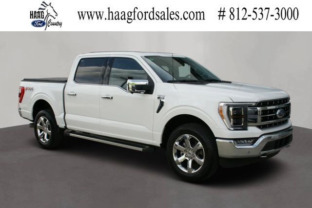 Power meets innovation in this 2021 Ford F-150 Lariat SuperCrew 4WD, finished in bold Black with a Clean CARFAX. Equipped with the advanced 3.5L PowerBoost Full-Hybrid V6 and a smooth 10-Speed Automatic transmission, this F-150 delivers impressive horsepower, instant torque, and outstanding efficiency giving you serious capability without compromise. Paired with an Electronic Locking 3.73 Axle Ratio and the FX4 Off-Road Package, its built to handle tough terrain with confidence thanks to Hill Descent Control, Rock Crawl Mode, Monotube Rear Shocks, and Off-Road Tuned Front Shock Absorbers. The Lariat trim surrounds you with premium comfort, including Leather-Trimmed Bucket Seats, Heated Front and 2nd Row Heated Seats, a Heated Steering Wheel, Memory Seat, and a Power Tilt/Telescoping Steering Column with Memory. A Twin Panel Moonroof brings in natural light, while Front Dual Zone A/C ensures personalized comfort. Tray Style Floor Liners add durability for everyday use. Technology is front and center with Connected Built-In Navigation, a premium B&O Sound System by Bang & Olufsen, Intelligent Adaptive Cruise Control with Stop & Go, and Ford Co-Pilot360 Assist 2.0 featuring Evasive Steering Assist, Intersection Assist, Speed Sign Recognition, and more. Rain-Sensing Wipers, LED Projector Headlamps with Dynamic Bending capability, and a 360-degree suite of driver-assist features enhance visibility and safety. This truck stands out with the Lariat Chrome Appearance Package and Lariat Sport Appearance Package, showcasing a Chrome 2-Bar Grille, Chrome Door and Tailgate Handles, Chrome Skull Caps, 6" Chrome Running Boards, accent-color step bars, body-color bumpers, FX4 bodyside decals, and your choice of 18" Machined Aluminum or Chrome-Like PVD wheels. With 4WD capability, an Onboard 400W Outlet, Universal Garage Door Opener, and the strength to tow and haul with ease, this 2021 F-150 Lariat is the perfect blend of rugged performance and refined luxury. Schedule your test drive today. Haag Ford is your ultimate destination for pre-owned vehicles near Lawrenceburg, Greendale, Aurora, Guilford and Bright, Indiana; Hebron, Florence, Petersburg, Erlanger and Burlington, Kentucky; and Cleves, North Bend, Miamitown, Harrison and Cincinnati, Ohio. Online pricing excludes $235 doc fee and taxes. Haag Ford offers used vehicles from most major manufacturers including Ford, Lincoln, Chevrolet, Dodge, RAM, GMC, Jeep, Toyota, Nissan, etc. Our vehicles vary in drivetrain from all wheel drive (AWD) and four wheel drive (4WD) to front wheel drive and rear wheel drive with automatic, manual, automated manual and cvt transmissions and come in body styles like convertible, coupe, hatchback, sedan, SUV and crossover, truck, pickup truck, van, cargo van, minivan and wagon varying between two door, four door, 5 door, crew cab, extended cab and regular cab. Vehicles can vary in fuel type including diesel, electric, gasoline, hybrid, flex-fuel and plug-in hybrid which result in various fuel mileage of 10+ MPG, 20+ MPG, 30+ MPG and 40+ MPG. We often have vehicles varying in colors like beige, black, blue, brown, burgundy, charcoal, gold, gray, green, off white, orange, pink, purple, red, silver, tan, turquoise, white, and yellow with interior colors that are beige, black, brown, gray and charcoal, off white, tan, white and sometimes even red! Our preowned selection offers a wide array of engine size/displacements including, 3 cylinder, 4 cylinder, 6 cylinder and 8 cylinder motors. Other various features include dual rear wheels, keyless entry, premium wheels, roof rack, trailer hitch, tow hitch, tow hooks, adaptive cruise control, android auto, apple car play, automatic parking, blue tooth, hands-free, home-link, USB port, cruise control, DVD player, keyless start, navigation, portable audio connection, premium audio, remote engine start, satellite radio, steering wheel controls, heated steering wheel, leather seats, memory seat, third row seating