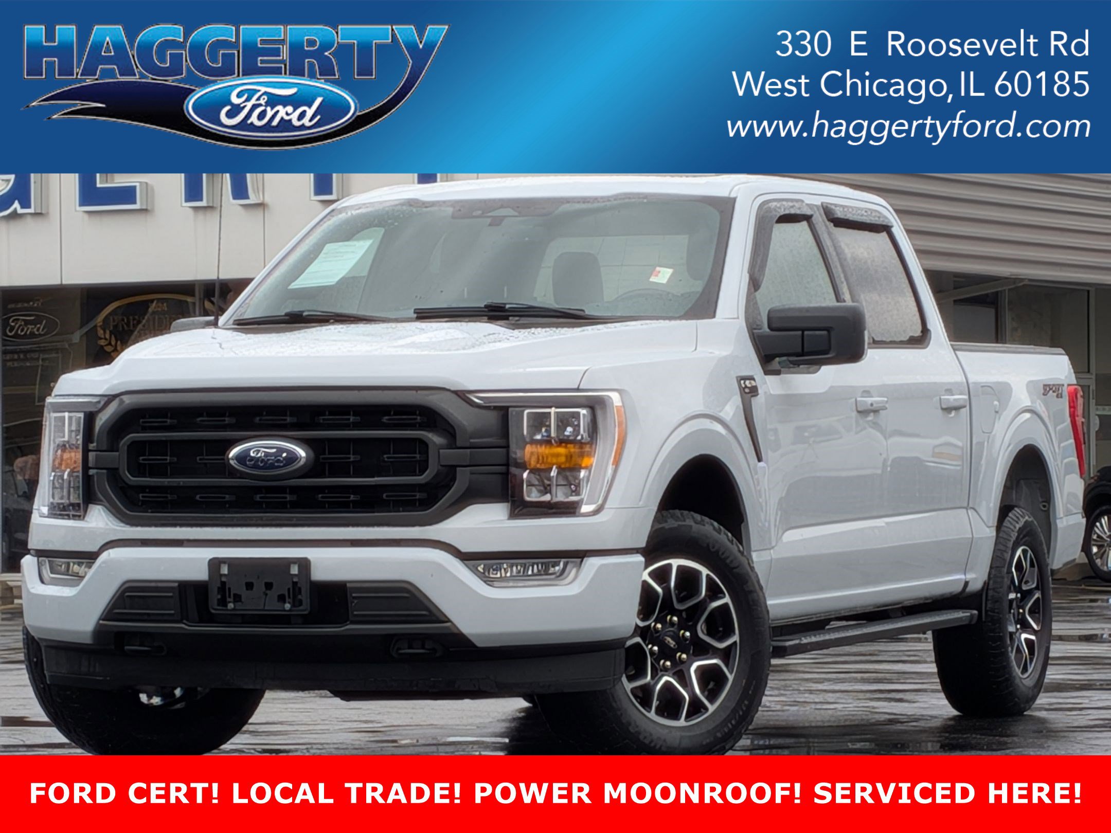 For Value and Integrity, it has to be Haggerty! Odometer is 24404 miles below market average! CARFAX One-Owner. Agate Black Metallic 2023 Ford F-150 XL 19/22 City/Highway MPG 2.7L V6 EcoBoost 4WD XL ***Ford Blue Advantage GOLD Certified Pre-Owned!!***, ***GREAT VALUE HERE! ALL FORD GOLD CPO WARRANTY AND BENEFITS INCLUDED IN THE PRICE!!***, CLEAN CARFAX, ONE OWNER, CHECK OUT THIS 8000 MILE SUPERCAB! HURRY BEFORE ITS GONE!, 4WD, 3.55 Axle Ratio, 4-Wheel Disc Brakes, 6 Speakers, ABS brakes, Air Conditioning, AM/FM radio, Auto High Beam, Auto High-beam Headlights, Black Platform Running Boards, Body-Color Front Rear Bumpers, Box Side Decals, Brake assist, Class IV Trailer Hitch Receiver, Compass, Dual front impact airbags, Dual front side impact airbags, Electronic Stability Control, Emergency communication system: SYNC 4 911 Assist, Equipment Group 101A Standard, Exterior Parking Camera Rear, Front anti-roll bar, Front Center Armrest, Front reading lights, Front wheel independent suspension, Fully automatic headlights, GVWR: 6,480 lbs Payload Package, Heated door mirrors, Illuminated entry, Keyless Entry Keypad w/o Remote Start, Lane-Keeping System, Low tire pressure warning, Molded-In Color Black Honeycomb Style Grille, Occupant sensing airbag, Outside temperature display, Overhead airbag, Overhead console, Panic alarm, Passenger vanity mirror, Post-Collision Braking, Power door mirrors, Power windows, Pre-Collision Assist w/Automatic Emergency Braking, Radio data system, Radio: AM/FM SiriusXM w/360L, Radio: AM/FM Stereo w/6 Speakers, Rear step bumper, Rear Window Defroster, Rear Window Fixed Privacy Glass w/Defroster, Rear-View Camera, Remote keyless entry, Reverse Sensing System, Security system, Speed control, Speed-sensing steering, Split folding rear seat, Steering wheel mounted audio controls, STX Appearance Package, SYNC 4, SYNC 4 w/Enhanced Voice Recognition, Tachometer, Telescoping steering wheel, Tilt steering wheel, Traction control, Trip computer, Unique Sport Cloth 40/20/40 Front-Seats, Voltmeter, Wheels: 18' Dark Painted Aluminum (DISC). Certified. Ford Gold Certified Details: * and 22,000 FordPass Rewards Points to use toward first two maintenance visits * 172 Point Inspection * Transferable Warranty * Vehicle History * Roadside Assistance * Limited Warranty: 12 Month/12,000 Mile (whichever comes first) after new car warranty expires or from certified purchase date * Powertrain Limited Warranty: 84 Month/100,000 Mile (whichever comes first) from original in-service date * Warranty Deductible: $100 Serving the communities of West Chicago, Winfield, Wheaton, Naperville, St. Charles, Batavia, Geneva, Aurora, Carol Stream, Downers Grove, Glendale Heights, Warrenville, and North Aurora.