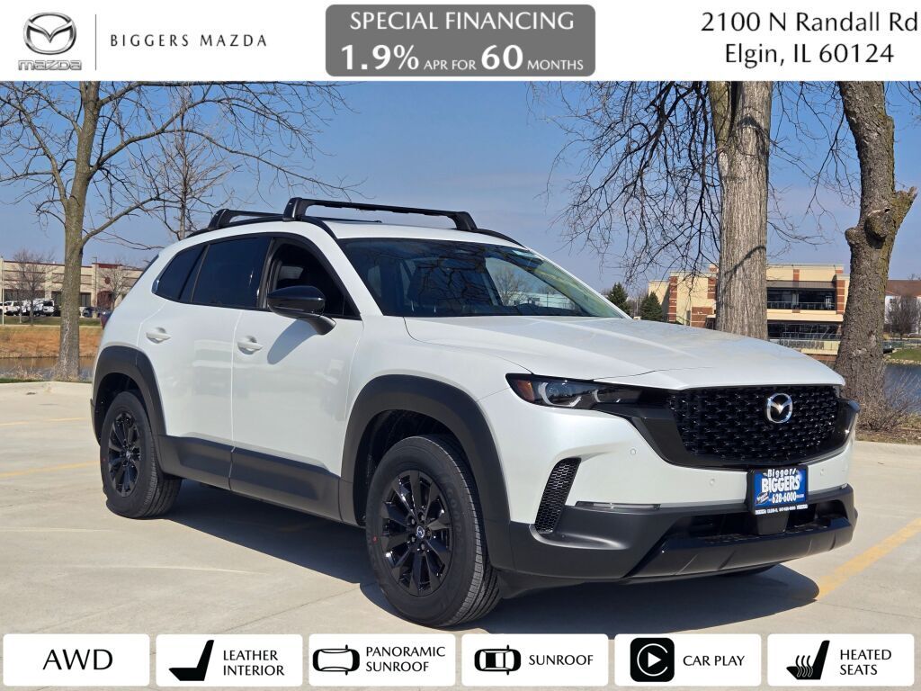 Experience the Pinnacle of Crossover Versatility with the 2025 Mazda CX-50 2.5 S Premium Plus Package Elevate your driving experience with the exceptional 2025 Mazda CX-50 2.5 S Premium Plus Package. This meticulously crafted crossover SUV offers a captivating blend of style, performance, and advanced technology, making it the perfect companion for your adventures. Polymetal Gray Metallic Paint Charge Black Lug Nuts and Black Wheel Locks Retractable Cargo Cover Premium Carpet Floor Mats Cargo Package (Includes Cargo Net, Cargo Blocks) Powered by Mazda's renowned SKYACTIV® 2.5L 4-Cylinder DOHC 16V engine and paired with a 6-Speed Automatic transmission, this CX-50 delivers impressive fuel efficiency, with an EPA-estimated 25 MPG in the city and 31 MPG on the highway. The standard All-Wheel Drive system ensures confident handling and traction, no matter the road conditions. Step inside the well-appointed cabin and experience the premium Bose® 12-Speaker Audio Sound System, which immerses you in a symphony of sound. Dual-zone automatic climate control, a power moonroof, and a power liftgate add to the CX-50's exceptional level of comfort and convenience. Safety is paramount in the 2025 Mazda CX-50, with a comprehensive suite of advanced driver-assistance technologies, including Mazda Connect, Blind Spot Monitoring, Rear Cross-Traffic Alert, and more. You can drive with confidence, knowing that you and your passengers are well-protected. This Certified Pre-Owned Mazda CX-50 has been meticulously inspected and comes with a wealth of benefits, including a 160-Point Inspection, Roadside Assistance, a Transferable Warranty, and a Vehicle History Report. With a limited warranty and Powertrain Limited Warranty, you can enjoy peace of mind for years to come. Your business is important to us! Call (847) 628-6000 to confirm availability. For over 40 years, Biggers Mazda near 60124 in Elgin, IL has proudly served Elgin, Schaumburg, Naperville, Palatine, Libertyville, Crystal Lake, and beyond. We offer new Mazda models, Certified Pre-Owned Mazdas, and pre-driven vehicles at consistently low prices. Don't see what you want? We'll find it for you. Visit us today for the best selection and lowest payments near 60124. Prices may include manufacturer incentives. Tax, title, license, and doc fee extra. Additional fees may apply to out-of-state purchases. THE BIGGERS PROMISE! * 100% TRANSPARENT PROCESS! * NO JUNK FEES! * NO LAST-MINUTE PRICE ADD-ONS! * NO SURPRISES EVER! * NO GAMES, JUST GREAT DEALS! * SALESPEOPLE FOCUSED ON YOUR NEEDS, NOT COMMISSIONS!