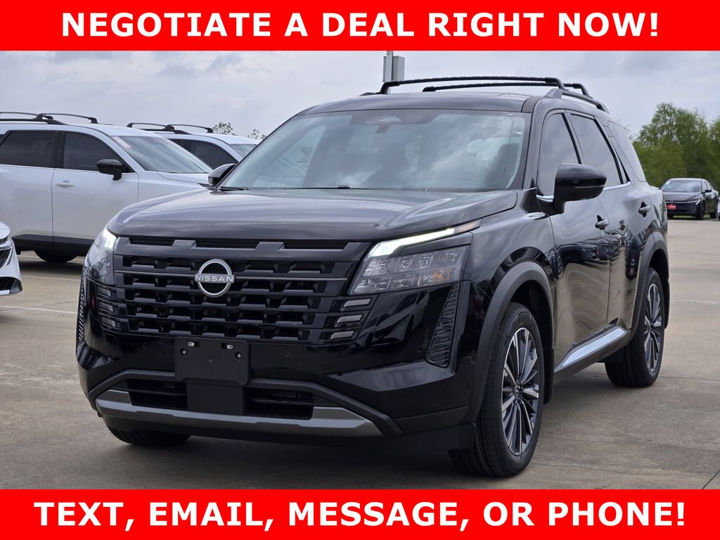 Everest White Pearl Tricoat 2026 Nissan Pathfinder SV 4WD 9-Speed Automatic 3.5L V6 DOHC 4WD. The Bravo Protection Package $3,995, includes Assurant Appearance Paint & Fabric Protection, RecovR Theft Protection, a 3-month/3,000-mile Powertrain Warranty, Lifetime Hand Car Wash service, and Value Shield Protection. These products and services are not pre-installed or active at the time of sale; they are optional. Coverage and benefits apply only after purchase and activation at the customers request. 4WD, 18" Painted Alloy Wheels, 3rd row seats: bench, 4-Wheel Disc Brakes, 6 Speakers, ABS brakes, Air Conditioning, Alloy wheels, AM/FM radio: SiriusXM w/360L, Auto High-beam Headlights, Automatic temperature control, Bench Seat Carpeted Floor Mats, Brake assist, Bumpers: body-color, Cloth Seating Surfaces, Cross Bars, Delay-off headlights, Driver door bin, Driver vanity mirror, Dual front impact airbags, Dual front side impact airbags, Electronic Stability Control, Emergency communication system: NissanConnect Services, Four wheel independent suspension, Front anti-roll bar, Front Bucket Seats, Front Center Armrest, Front dual zone A/C, Front reading lights, Fully automatic headlights, Garage door transmitter: myQ Connected Garage, Heated door mirrors, Heated Front Bucket Seats, Heated front seats, Illuminated entry, Knee airbag, Low tire pressure warning, NissanConnect featuring Apple CarPlay and Android Auto, Occupant sensing airbag, Outside temperature display, Overhead airbag, Overhead console, Panic alarm, Passenger door bin, Passenger vanity mirror, Power door mirrors, Power driver seat, Power Liftgate, Power steering, Power windows, Premium Paint, Radio data system, Radio: AM/FM Audio System with NissanConnect, Rear air conditioning, Rear anti-roll bar, Rear reading lights, Rear seat center armrest, Rear side impact airbag, Rear window defroster, Rear window wiper, Reclining 3rd row seat, Remote keyless entry, Security system, Speed control, Speed-sensing steering, Split folding rear seat, Spoiler, Steering wheel mounted audio controls, Tachometer, Telescoping steering wheel, Tilt steering wheel, Traction control, Trip computer, and Variably intermittent wipers. Recent Arrival! 21/27 City/Highway MPG *All pricing and details are believed to be accurate, but we do not warrant or guarantee such accuracy. The prices shown above may vary from region to region, as will incentives, and are subject to change. Vehicle information is based off standard equipment and may vary from vehicle to vehicle. Call or email for complete vehicle information. All specifications, prices and equipment are subject to change without notice. Prices and payments do not include tax, titles, tags, finance charges, documentation charges, emissions testing charges, or other fees required by law, vehicle sellers or lending organizations. Based on 2025 EPA mileage estimates, reflecting new EPA fuel economy methods beginning with 2008 models. Use for comparison purposes only. Do not compare to models before 2008. Your actual mileage will vary depending on how you drive and maintain your vehicle. **0% interest up to 72 months on all new 2025 inventory. Must choose from dealer stock, WAC, tier 1 NMAC, 0 percent in lieu of all rebates, trade-in required, negative equity does not apply, offer excludes Armada & Murano models. See dealer for full details. Not all buyers will qualify. While every effort has been made to ensure display of accurate data, the vehicle listings within this website may not reflect all accurate vehicle items. Accessories and color may vary. All inventory listed is subject to prior sale. The vehicle photo displayed may be an example only. Vehicle Photos may not match exact vehicles. Please confirm vehicle price with Dealership. See Dealership for details. Price includes: $3500 - Nissan Customer Cash. Exp. 05/04/2026