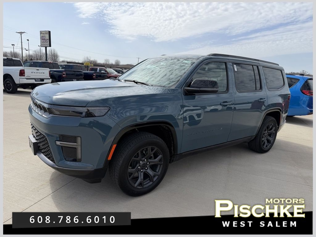 Navigation System,Dark Appearance Package,Quick Order Package 25D,Trailer Tow Group,Two Tone Paint Group,10 Speakers,AM/FM radio: SiriusXM with 360L,Audio memory,Premium audio system: UConnect 5,Radio data system,Radio: Uconnect 5 Nav w/12.3" Display,Air Conditioning,Automatic temperature control,Front dual zone A/C,Rear air conditioning,Rear dual zone A/C,Rear window defroster,Memory seat,Power driver seat,Power steering,Power windows,Remote keyless entry,Steering wheel mounted audio controls,Four wheel independent suspension,Heavy Duty Suspension,Speed-sensing steering,Traction control,4-Wheel Disc Brakes,ABS brakes,Dual front impact airbags,Dual front side impact airbags,Emergency communication system: Jeep Connect,Front anti-roll bar,Knee airbag,Low tire pressure warning,Occupant sensing airbag,Overhead airbag,Rear anti-roll bar,Rear side impact airbag,Power moonroof,Power Liftgate,Brake assist,Electronic Stability Control,ParkView Rear Back-Up Camera,Auto High-beam Headlights,Delay-off headlights,Front fog lights,Fully automatic headlights,Panic alarm,Security system,Active Cruise Control,Speed control,Auto-dimming door mirrors,Bumpers: body-color,Dark Daylight Opening Upper,Heated door mirrors,Power door mirrors,Spoiler,Titanium Exterior Accents,Titanium Rear Fascia Applique,Titanium Upper Grille Applique,Turn signal indicator mirrors,Apple CarPlay/Android Auto,Auto-dimming Rear-View mirror,Blind Spot w/Trailer Detection,Compass,Driver door bin,Driver vanity mirror,Front reading lights,Garage door transmitter,Heated steering wheel,Illuminated entry,Neo Ultra Lux II Seats,Outside temperature display,Passenger vanity mirror,Rear reading lights,Rear seat center armrest,Telescoping steering wheel,Tilt steering wheel,Trip computer,Front Bucket Seats,Heated front seats,Power passenger seat,Split folding rear seat,Front Center Armrest w/Storage,Passenger door bin,4 & 7-Pin Wiring Harness,Class III Receiver Hitch,Alloy wheels,Wheels: 20" x 8.5" Painted Diamond Aluminum Design 1,Rain sensing wipers,Rear window wiper,Speed-Sensitive Wipers,Variably intermittent wipers