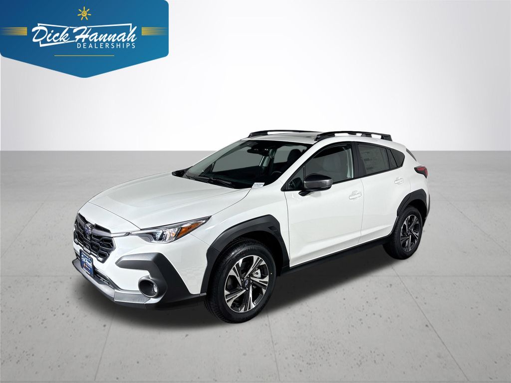 Rear Bumper Cover,LED Upgrade,Auto-Dimming Mirror with Compass and HomeLink,Auto-Dimming Exterior Mirror with Approach Light,Aero Crossbar Set,Crosstrek Mirror Package,Standard Model,Radio: Subaru 11.6" Multimedia Navigation System,Heated Front Bucket Seats,Sport Cloth Upholstery,Wheels: 18" x 7.0" J Dark Gray Aluminum-Alloy,4-Wheel Disc Brakes,Emergency communication system: MySubaru Companion (5-years free),Auto High-beam Headlights,Exterior Parking Camera Rear,AM/FM radio: SiriusXM,Compass,Variably intermittent wipers,Turn signal indicator mirrors,Trip computer,Traction control,Tilt steering wheel,Telescoping steering wheel,Steering wheel mounted audio controls,Split folding rear seat,Speed-sensing steering,Speed control,Security system,Remote keyless entry,Rear window wiper,Rear window defroster,Rear side impact airbag,Rear seat center armrest,Rear anti-roll bar,Radio data system,Power windows,Power steering,Power moonroof,Power driver seat,Power door mirrors,Passenger vanity mirror,Passenger door bin,Panic alarm,Overhead console,Overhead airbag,Outside temperature display,Occupant sensing airbag,Low tire pressure warning,Leather steering wheel,Knee airbag,Illuminated entry,Heated front seats,Heated door mirrors,Fully automatic headlights,Front reading lights,Front fog lights,Front dual zone A/C,Front anti-roll bar,Four wheel independent suspension,Dual front side impact airbags,Dual front impact airbags,Driver vanity mirror,Driver door bin,Bumpers: body-color,Brake assist,Automatic temperature control,Anti-whiplash front head restraints,Alloy wheels,Adjustable head restraints: driver and passenger w/tilt,ABS brakes,Tachometer,Spoiler,Navigation System,Leather Shift Knob,Front Center Armrest,Front Bucket Seats,Electronic Stability Control,Air Conditioning,6 Speakers