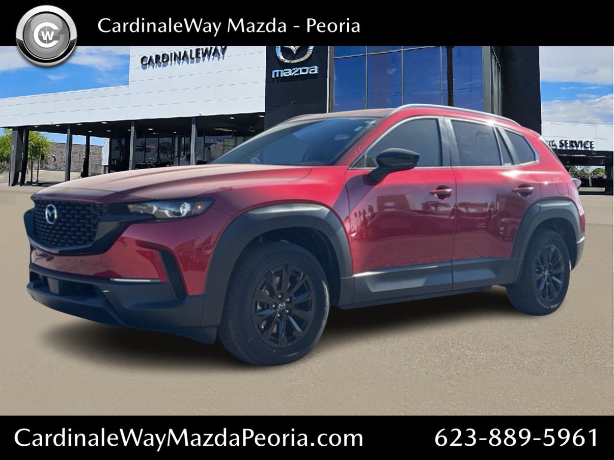 24/30 City/Highway MPG Phoenix's New Mazda Vehicle in Peoria, Glendale, Scottsdale, Avondale!! Internet pricing on some vehicles includes Mazda Finance Rebates. Incentivized rates may affect incentives and/or pricing. Prices do not include tax, title, license, and $999.90 doc fee. Offer valid only on vehicles in stock at the time of purchase and prices expire at midnight on the date displayed. Residency & other restrictions may apply. Want us to come to you? No problem! In case we missed a picture or a detail you would like to see of this 2026 Mazda CX-50, we are happy to send you A PERSONAL VIDEO walking around the vehicle focusing on the closest details that are important to you. We can send it directly to you via text or email. We look forward to hearing from you! Second key floor mats and owners manual may not be available on all pre-owned vehicles. We have made every effort to ensure the accuracy of the data that is displayed. However, the information may contain errors, typos, or omissions which may not reflect all vehicle items and accessories. All inventory is subject to prior sale and all prices are subject to change. Dealer is not responsible for errors or typos. Vehicles may vary from stock photos shown. Please see dealer to confirm details, availability and pricing. Pricing provided may vary significantly between website and dealer as a result of supply chain constraints. Pricing shown is non-binding and does not constitute an offer. Contact your dealer for updated vehicle pricing. Price includes: $1000 - Customer Cash. Exp. 04/30/2026