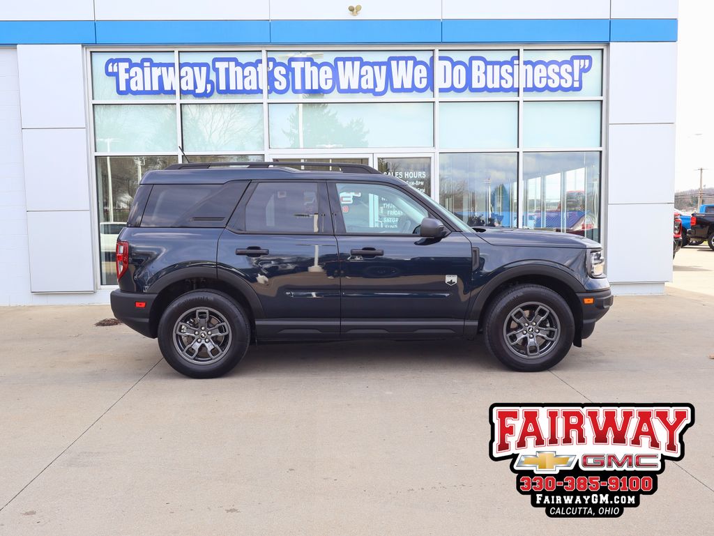 Recent Arrival! 2022 Ford Bronco Sport Outer Banks 4D Sport Utility 1.5L EcoBoost 8-Speed Automatic 4WD PERFORMANCE & HANDLING FOUR WHEEL INDEPENDENT SUSPENSION CLASS TWO TRAILER TOW PACKAGE WITH TRAILER SWAY CONTROL SPEED SENSING STEERING TRACTION CONTROL FOUR WHEEL DISC BRAKES ANTI LOCK BRAKING SYSTEM COMFORT & CONVENIENCE LEATHER TRIMMED HEATED SPORT CONTOUR BUCKET SEATS HEATED FRONT SEATS HEATED STEERING WHEEL DUAL ZONE AUTOMATIC CLIMATE CONTROL POWER DRIVER SEAT POWER PASSENGER SEAT REMOTE KEYLESS ENTRY WIRELESS CHARGING PAD TECHNOLOGY & ENTERTAINMENT SYNC THREE COMMUNICATIONS AND ENTERTAINMENT SYSTEM APPLE CARPLAY AND ANDROID AUTO SIRIUSXM RADIO HD RADIO SIX SPEAKER AUDIO SYSTEM RADIO DATA SYSTEM STEERING WHEEL MOUNTED AUDIO CONTROLS INTERIOR FRONT BUCKET SEATS FRONT CENTER ARMREST REAR SEAT CENTER ARMREST SPLIT FOLDING REAR SEAT CARGO MANAGEMENT SYSTEM CARGO MAT ILLUMINATED ENTRY EXTERIOR EIGHTEEN INCH EBONY BLACK PAINTED ALUMINUM WHEELS ROOF RACK RAILS ONLY FRONT FOG LIGHTS FULLY AUTOMATIC HEADLIGHTS HEATED DOOR MIRRORS RAIN SENSING WIPERS SAFETY & SECURITY ELECTRONIC STABILITY CONTROL REAR PARKING SENSORS AUTOMATIC HIGH BEAM HEADLIGHTS DUAL FRONT AND SIDE IMPACT AIRBAGS KNEE AIRBAG TIRE PRESSURE MONITORING SYSTEM PANIC ALARM SECURITY SYSTEM There truly is a difference when buying a Pre-Owned Vehicle at Fairway Chevrolet GMC. You work with one dedicated salesperson from start to finish. No hidden decision-makers, no back-and-forth negotiations just honest and straightforward service. We're here to make your car-buying experience smooth and enjoyable.