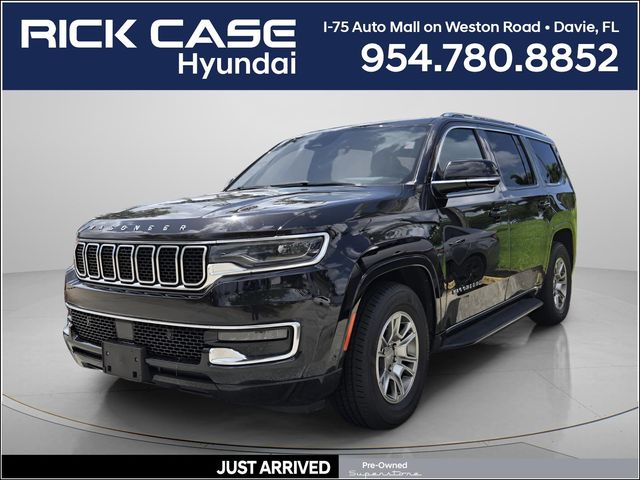 Quick Order Package 25E,3.55 Rear Axle Ratio,Wheels: 18" x 8.0" Aluminum Base Finish,Leather Trimmed Bucket Seats,Normal Duty Suspension,Radio: Uconnect 5 Nav w/10.1" Display,4-Wheel Disc Brakes,Emergency communication system: Wagoneer Connect,Apple CarPlay/Android Auto,AM/FM radio: SiriusXM with 360L,Exterior Parking Camera Rear,Driver's Seat Mounted Armrest,Front Center Armrest w/Storage,Compass,Speed-Sensitive Wipers,10 Speakers,Auto-dimming Rear-View mirror,Ventilated front seats,Variably intermittent wipers,Turn signal indicator mirrors,Trip computer,Traction control,Tilt steering wheel,Telescoping steering wheel,Steering wheel mounted audio controls,Steering wheel memory,Split folding rear seat,Speed-sensing steering,Speed control,Security system,Remote keyless entry,Reclining 3rd row seat,Rear window wiper,Rear window defroster,Rear seat center armrest,Rear reading lights,Rear dual zone A/C,Rear anti-roll bar,Rear air conditioning,Radio data system,Power windows,Power steering,Power passenger seat,Power driver seat,Power door mirrors,Power adjustable front head restraints,Pedal memory,Passenger vanity mirror,Passenger seat mounted armrest,Passenger door bin,Panic alarm,Overhead console,Overhead airbag,Outside temperature display,Occupant sensing airbag,Memory seat,Low tire pressure warning,Knee airbag,Illuminated entry,Heated steering wheel,Heated front seats,Heated door mirrors,Garage door transmitter,Fully automatic headlights,Front reading lights,Front fog lights,Front dual zone A/C,Front anti-roll bar,Four wheel independent suspension,Dual front side impact airbags,Dual front impact airbags,Driver vanity mirror,Driver door bin,Delay-off headlights,Bumpers: body-color,Brake assist,Automatic temperature control,Auto-leveling suspension,Auto-dimming door mirrors,Audio memory,Anti-whiplash front head restraints,Alloy wheels,Adjustable pedals,Adjustable head restraints: driver and passenger w/tilt,ABS brakes,3rd row seats: bench,Voltmeter,Tachometer,Power Liftgate,Navigation System,Front Bucket Seats,Electronic Stability Control,Air Conditioning