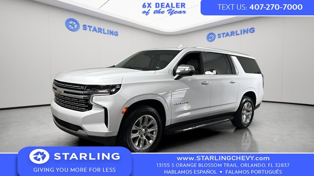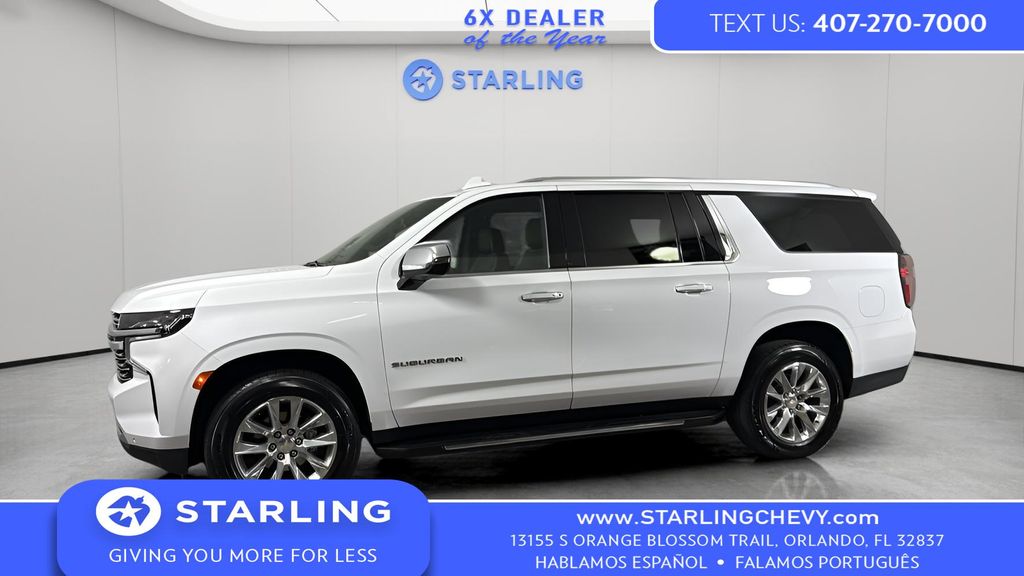 Experience the epitome of luxury and capability with this stunning 2023 Chevrolet Suburban Premier. This impressive SUV boasts a commanding presence and a host of premium features that will elevate your driving experience to new heights. - Preferred Equipment Group 1LZ - Bose 10-Speaker Surround w/CenterPoint - SiriusXM Radio w/360L - Enhanced Driver Information Center - Hands-Free Rear Power Programmable Liftgate - Memory Settings - Remote Start - Universal Home Remote - Wrapped Steering Wheel - Hill Descent Control - LED Daytime Running Lamps Powered by the robust EcoTec3 5.3L V8 engine and equipped with a 10-Speed Automatic transmission with Overdrive, this Suburban Premier delivers exceptional performance and efficiency, with an impressive 15 MPG in the city and 19 MPG on the highway. The intelligent 4WD system ensures you can conquer any terrain with confidence, while the Magnetic Ride Control Suspension provides a smooth and responsive ride. Step inside and be enveloped in the luxurious cabin, featuring premium Perforated Leather Seating Surfaces, Heated and Ventilated Front Seats, and Heated Outboard Second-Row Seats. The Chevrolet Infotainment 3 Premium System with Navigation, Apple CarPlay, and Android Auto integration keeps you connected and entertained on the go. Safety is of the utmost importance, and this Suburban Premier is equipped with a suite of advanced driver-assistance technologies, including Lane Change Alert with Side Blind Zone Alert, Rear Cross Traffic Alert, and the Safety Alert Seat. The Hands-Free Rear Power Programmable Liftgate and Wireless Charging further enhance the convenience and functionality of this exceptional SUV. With its impressive capabilities, refined interior, and cutting-edge technology, this 2023 Chevrolet Suburban Premier is the ultimate family-friendly SUV. Experience the difference for yourself and schedule a test drive today. We're confident you'll be impressed by the unparalleled combination of luxury, performance, and versatility this Suburban has to offer.