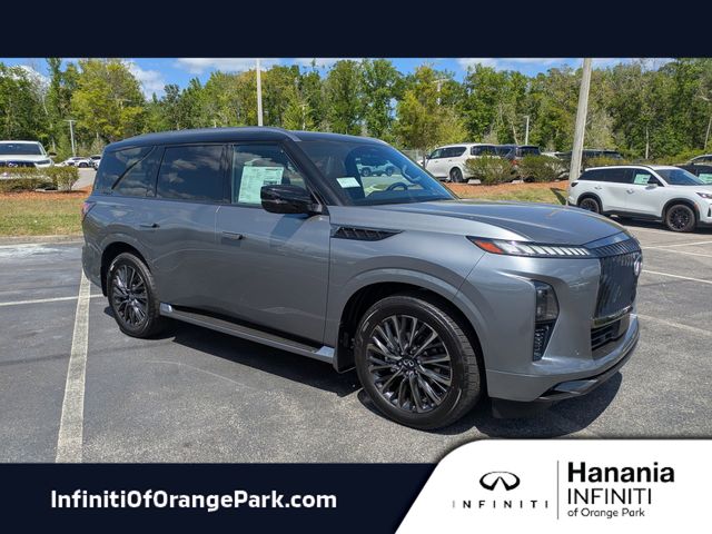 Splash Guards,Cargo Blocks,Bose Performance Series 17-Speaker Sound System,Cargo Mat,Clear Rear Bumper Film,Floor Mats with Bench Seats on 3rd Row Tray,Cargo Package,Medic Kit,Cargo Net,Literature Kit,Radio: Klipsch Premium Audio System,Climate Controlled Front Bucket Seats,Tailorfit-Appointed Seating Surfaces,Wheels: 20" x 8J Machined Aluminum Alloy,4-Wheel Disc Brakes,Navigation system: Google Built-in,Emergency communication system: INFINITI InTouch,Apple CarPlay/Android Auto,Power moonroof: Panoramic,AM/FM radio: SiriusXM with 360L,Auto High-beam Headlights,16 Speakers,Speed-Sensitive Wipers,Auto-dimming Rear-View mirror,Front beverage holders,Ventilated front seats,Variably intermittent wipers,Turn signal indicator mirrors,Trip computer,Traction control,Tilt steering wheel,Telescoping steering wheel,Steering wheel mounted audio controls,Steering wheel memory,Split folding rear seat,Speed-sensing steering,Speed control,Security system,Remote keyless entry,Reclining 3rd row seat,Rear window wiper,Rear window defroster,Rear side impact airbag,Rear seat center armrest,Rear reading lights,Rear anti-roll bar,Rear air conditioning,Rain sensing wipers,Radio data system,Power windows,Power steering,Power passenger seat,Power driver seat,Power door mirrors,Passenger vanity mirror,Passenger door bin,Panic alarm,Overhead console,Overhead airbag,Outside temperature display,Occupant sensing airbag,Memory seat,Low tire pressure warning,Leather steering wheel,Knee airbag,Illuminated entry,Heated steering wheel,Heated rear seats,Heated front seats,Heated door mirrors,Garage door transmitter: HomeLink,Fully automatic headlights,Front reading lights,Front dual zone A/C,Front anti-roll bar,Four wheel independent suspension,Dual front side impact airbags,Dual front impact airbags,Driver vanity mirror,Driver door bin,Delay-off headlights,Bumpers: body-color,Brake assist,Automatic temperature control,Auto-dimming door mirrors,Auto tilt-away steering wheel,Anti-whiplash front head restraints,Alloy wheels,ABS brakes,3rd row seats: bench,Tachometer,Spoiler,Power Liftgate,Leather Shift Knob,Front Center Armrest,Front Bucket Seats,Electronic Stability Control,Air Conditioning