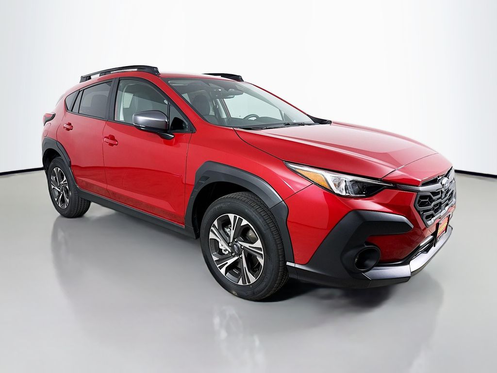 Crimson Red Pearl 2026 Subaru Forester Premium AWD Lineartronic CVT 2.5L 4-Cylinder DOHC 16V ABS brakes, Active Cruise Control, Alloy wheels, Compass, Electronic Stability Control, Front dual zone A/C, Heated door mirrors, Heated Front Bucket Seats, Heated front seats, Illuminated entry, Low tire pressure warning, Navigation System, Power Liftgate, Remote keyless entry, Traction control, 4-Wheel Disc Brakes, 6 Speakers, Air Conditioning, AM/FM radio: SiriusXM with 360L, Anti-whiplash front head restraints, Auto High-beam Headlights, Automatic temperature control, Brake assist, Bumpers: body-color, Driver door bin, Driver vanity mirror, Dual front impact airbags, Dual front side impact airbags, Emergency communication system: MySubaru Companion (5-years free), Exterior Parking Camera Rear, Four wheel independent suspension, Front anti-roll bar, Front Bucket Seats, Front Center Armrest, Front fog lights, Front reading lights, Fully automatic headlights, Knee airbag, Occupant sensing airbag, Outside temperature display, Overhead airbag, Overhead console, Panic alarm, Passenger door bin, Passenger vanity mirror, Power door mirrors, Power driver seat, Power moonroof: Panoramic, Power steering, Power windows, Premium Textured Cloth Upholstery, Radio data system, Radio: Subaru 11.6 Multimedia Navigation System, Rear anti-roll bar, Rear seat center armrest, Rear window defroster, Rear window wiper, Security system, Speed control, Speed-sensing steering, Split folding rear seat, Spoiler, Steering wheel mounted audio controls, Tachometer, Telescoping steering wheel, Tilt steering wheel, Trip computer, Variably intermittent wipers, Wheels: 18 x 7.0 J Dark Metallic Aluminum-Alloy, ABS brakes, Active Cruise Control, Alloy wheels, Compass, Electronic Stability Control, Front dual zone A/C, Heated door mirrors, Heated Front Bucket Seats, Heated front seats, Illuminated entry, Low tire pressure warning, Navigation System, Power Liftgate, Remote keyless entry, Traction control.35/34 City/Highway MPG