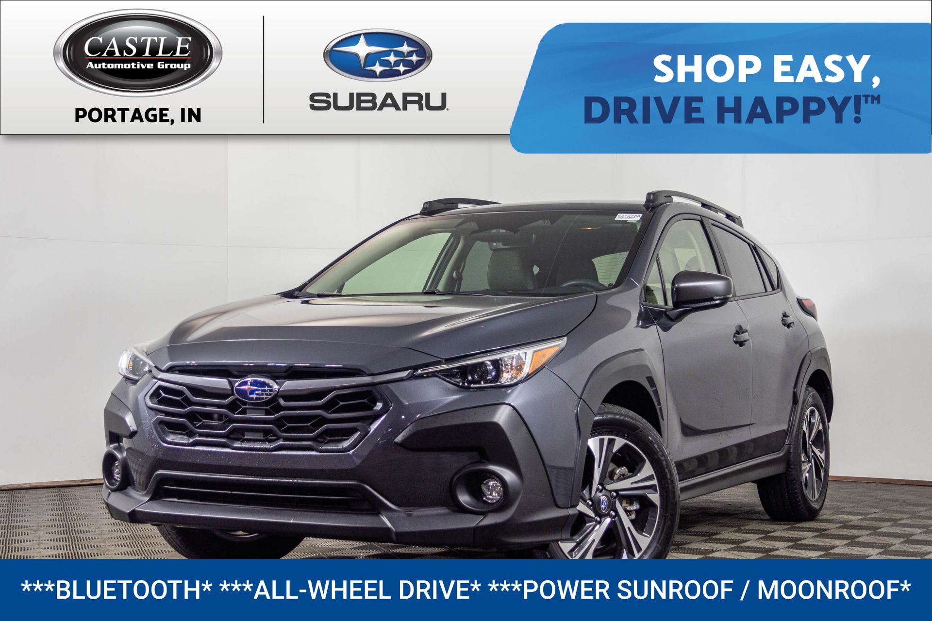 Moonroof and Navigation and Surround View Monitor and Ventilated Seats,12 Speakers,AM/FM radio: SiriusXM with 360L,harman/kardonยฎ Speakers,Radio: Subaru 12.1" Multimedia System,Radio: Subaru 12.1" Multimedia System with Navigation,Air Conditioning,Automatic temperature control,Front dual zone A/C,HVAC memory,Rear window defroster,Power driver seat,Power steering,Power windows,Remote keyless entry,Steering wheel mounted audio controls,Four wheel independent suspension,Speed-sensing steering,Traction control,4-Wheel Disc Brakes,ABS brakes,Anti-whiplash front head restraints,Dual front impact airbags,Dual front side impact airbags,Emergency communication system: MySubaru Companion (5-years free),Front anti-roll bar,Knee airbag,Low tire pressure warning,Occupant sensing airbag,Overhead airbag,Rear anti-roll bar,Power Moonroof,Power Liftgate,Blind Spot Warning,Brake assist,Electronic Stability Control,Exterior Parking Camera Rear,Auto High-beam Headlights,Front fog lights,Fully automatic headlights,Panic alarm,Security system,Speed control,Auto-Dimming Exterior Mirror with Approach Light,Bumpers: body-color,Heated door mirrors,Power door mirrors,Power-Folding Heated Exterior Mirrors,Splash Guards,Spoiler,Turn signal indicator mirrors,Auto-Dimming Mirror with Compass and HomeLink,Driver door bin,Driver vanity mirror,Front reading lights,Heated and Ventilated Front Bucket Seats,Heated steering wheel,Illuminated entry,Leather Shift Knob,Leather steering wheel,LED Upgrade,Outside temperature display,Overhead console,Passenger vanity mirror,Rear seat center armrest,Surround View Monitor,Tachometer,Telescoping steering wheel,Tilt steering wheel,Trip computer,Front Bucket Seats,Heated Front Bucket Seats,Heated front seats,Heated rear seats,Nappa Leather Upholstery,Split folding rear seat,StarTex-Trimmed Upholstery,Front Center Armrest w/Storage,Passenger door bin,Alloy wheels,Wheels: 17" x 7J Matte Black Finish Aluminum-Alloy,Rain sensing wipers,Rear window wiper,Variably intermittent wipers,**CASTLE SUBARU-PORTAGE, INDIANA