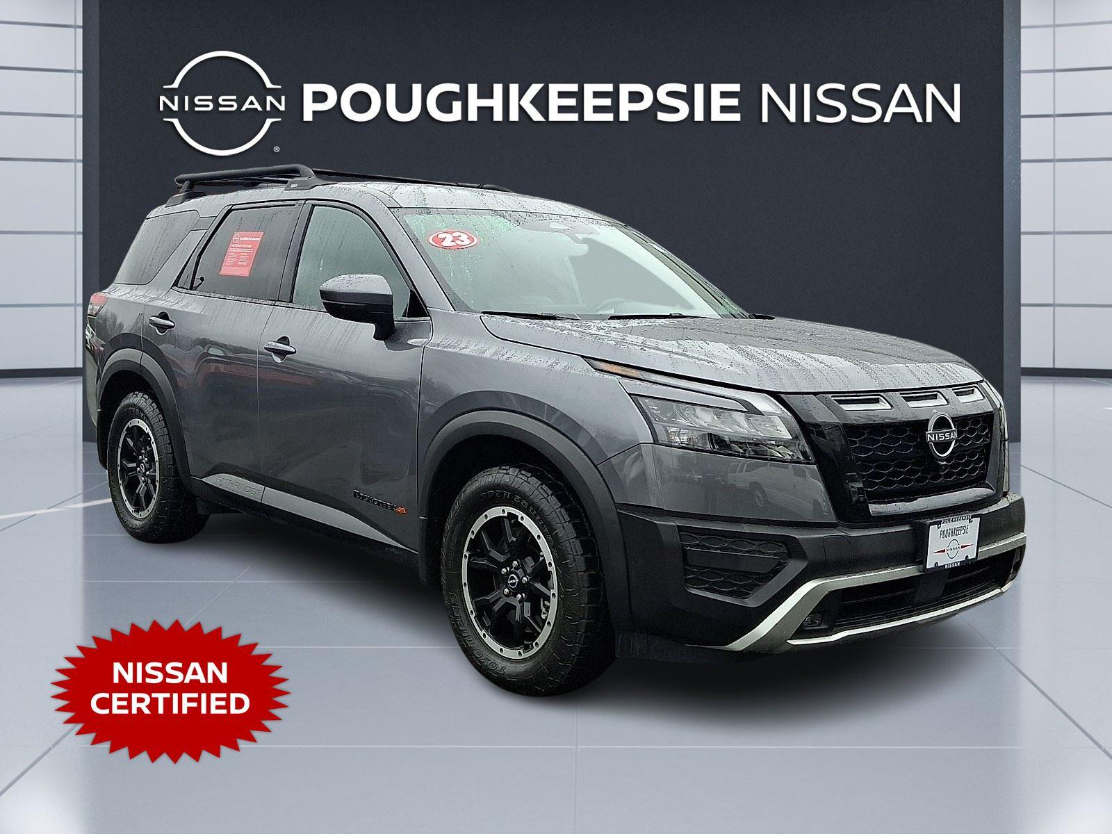 This Certified 2022 Nissan Pathfinder SV, has a Deep Ocean Blue Pearl exterior and an Charcoal interior color. 75,737 miles. Stock Number PU6087T. You can connect with us by calling 845-297-4314 Important Package and Feature Information Carpeted Floor Mats ($255 value)Includes 4 piece carpeted floor mats. Safety and Security Forward collision mitigation - Forward thinking. You look away for just a second and suddenly the vehicle in front of you has stopped. That's when the forward collision mitigation system comes to life. When it senses an impending impact, it will activate a combination of features to help prevent or reduce the severity of an accident. Forward collision mitigation is always looking ahead. Pedestrian impact prevention - An extra step toward safety. Pedestrians don't always stop, look, and listen, but with Pedestrian Impact Prevention, your vehicle is equipped to better see them and avoid them. This system constantly monitors the road ahead to identify and track pedestrians. It projects that image to an interior display screen, AND should an impact become likely, Pedestrian impact prevention takes steps to avoid a collision. Hands-on cruise control. Set it and forget it. Road trips used to be stressful. Cruise control only managed speed, but not distance or safety. Now, with hands-on cruise control, simply set your desired speed and let sensor technology maintain a safe distance between you and surrounding vehicles. It slows you down; speeds you up and even keeps you in your own lane. Meet your ultimate co-pilot with hands-on cruise control.Technology and Telematics Smart device mirroring - Smartphone, meet smart car. You can control your device through your vehicle's infotainment system. Smart device mirroring brings together safety and convenience by making it easier to find what you're looking for while keeping your eyes on the road. Mobile hotspot - WiFi on the fly. Connect your devices to the Internet through your vehicle's private mobile hotspot and take the internet wherever your journey takes you, without eating up your data allowance. Find the hotspot with mobile hotspot. DEEP OCEAN BLUE PEARL, CHARCOAL, CLOTH SEATING SURFACES, [C03] 50 STATE EMISSIONS, [L92] BENCH SEAT CARPETED FLOOR MATS (SET OF 4) At Poughkeepsie Nissan, we're here to Serve you! Our staff is 100% dedicated to customer satisfaction and we understand that you need clear, transparent information throughout the car buying process. With our live market pricing philosophy, we offer the right cars at the right price, and the transparency to back it up!