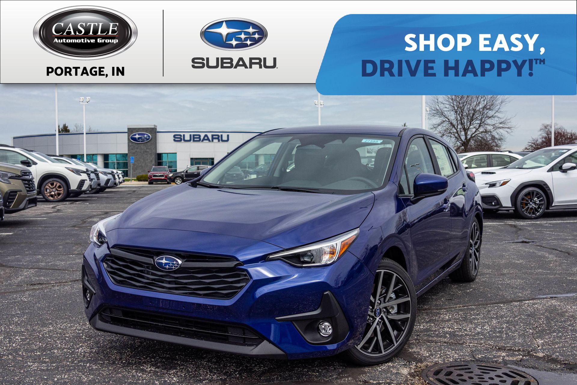 2026 Subaru Impreza 2.5RS Crystal White Pearl 2.5RS CVT Lineartronic 4D Hatchback 2.5L I4 DOHC 16V AWD 26/33 City/Highway MPG Auto-Dimming Exterior Mirror with Approach Light, Damper Spring, 4-Wheel Disc Brakes, 6 Speakers, ABS brakes, Air Conditioning, Alloy wheels, AM/FM radio: SiriusXM, Anti-whiplash front head restraints, Auto High-beam Headlights, Auto-Dimming Mirror with Compass and HomeLink, Automatic temperature control, Brake assist, Bumpers: body-color, Cargo Tray, Driver door bin, Driver vanity mirror, Dual front impact airbags, Dual front side impact airbags, Electronic Stability Control, Emergency communication system: MySubaru Companion (5-years free), Exterior Parking Camera Rear, Four wheel independent suspension, Front anti-roll bar, Front Bucket Seats, Front Center Armrest, Front dual zone A/C, Front fog lights, Front reading lights, Fully automatic headlights, Heated door mirrors, Heated Front Bucket Seats, Heated front seats, Illuminated entry, Knee airbag, Leather Shift Knob, Low tire pressure warning, Occupant sensing airbag, Outside temperature display, Overhead airbag, Overhead console, Panic alarm, Passenger door bin, Passenger vanity mirror, Power door mirrors, Power steering, Power windows, Radio data system, Radio: Subaru 11.6" Multimedia Plus System, Rear anti-roll bar, Rear seat center armrest, Rear side impact airbag, Rear window defroster, Rear window wiper, Remote keyless entry, RS Cloth Upholstery, Security system, Speed control, Speed-sensing steering, Split folding rear seat, Spoiler, Steering wheel mounted audio controls, Tachometer, Telescoping steering wheel, Tilt steering wheel, Traction control, Trip computer, Turn signal indicator mirrors, Variably intermittent wipers, and Wheels: 18" x 7.5" Jdark Gray Aluminum-Alloy. SHOP 100% ONLINE! EXPERIENCE THE CASTLE DIFFERENCE! Free Loaner Vehicles, 72 Hour Love it or Exchange it Policy, Free Vehicle Delivery Service within 50 miles, Ship anywhere in the US, Hassle-Free Online Purchase Experience. SHOP EASY, DRIVE HAPPY! Price does not include tax, title, doc fee of $249.00.