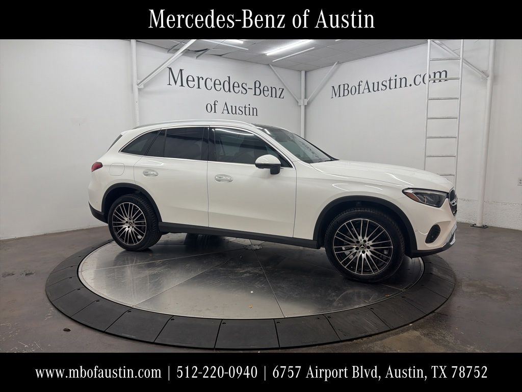 Polar White 2026 Mercedes-Benz GLC 300 4MATIC® This vehicle comes with the following features and options : AMG® Lite Plus (Body Color Roof Spoiler and Panorama Sunroof), 11.9" Center Touchscreen Display, 16-Way Power Front Seats, 18" 5-Twin Spoke Wheels, 3 USB C-Ports, 4-Wheel Disc Brakes, 8 Speakers, ABS brakes, Air Conditioning, Alloy wheels, AM/FM radio: SiriusXM, Apple CarPlay®/Android Auto®, Auto High-beam Headlights, Auto tilt-away steering wheel, Auto-dimming Rear-View mirror, Automatic temperature control, Black Fabric Headliner, Brake assist, Bumpers: body-color, Child-Seat-Sensing Airbag, Compass, Delay-off headlights, Driver door bin, Driver vanity mirror, Dual front impact airbags, Dual front side impact airbags, Electronic Stability Control, Emergency communication system: eCall Emergency System, Exterior Parking Camera Rear, Four wheel independent suspension, Front anti-roll bar, Front Bucket Seats, Front Center Armrest, Front dual zone A/C, Front reading lights, Fully automatic headlights, Garage door transmitter: HomeLink, Genuine wood dashboard insert, GUARD 360, HD Radio, Head restraints memory, Heated door mirrors, Heated Front Bucket Seats, Heated front seats, Heated Steering Wheel, Illuminated entry, Inductive Wireless Charging, Knee airbag, Leather steering wheel, Low tire pressure warning, MB-Tex Upholstery, Memory seat, Metal Weave Center Console, Occupant sensing airbag, Outside temperature display, Overhead airbag, Overhead console, Panic alarm, Passenger door bin, Passenger vanity mirror, Power adjustable front head restraints, Power door mirrors, Power driver seat, Power Liftgate, Power passenger seat, Power steering, Power windows, Premium audio system: MBUX, Radio data system, Radio: 3rd Generation MBUX, Rain sensing wipers, Rear anti-roll bar, Rear fog lights, Rear reading lights, Rear seat center armrest, Rear window defroster, Rear window wiper, Remote keyless entry, Security system, SiriusXM Satellite Radio, Speed control, Speed-sensing steering, Split folding rear seat, Spoiler, Steering wheel memory, Steering wheel mounted audio controls, Tachometer, Telescoping steering wheel, Tilt steering wheel, Traction control, Trip computer, Turn signal indicator mirrors, Variably intermittent wipers, Ventilated Front Seats, Wheels: 19" AMG® 5 Spoke with Black Accents, Wireless Android Auto®, and Wireless Apple CarPlay®. 23/31 City/Highway MPG