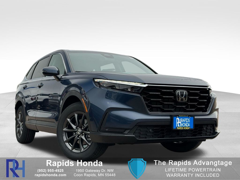 Now Available: Gray Metallic 2026 Honda CR-V EX-L at Rapids Honda! The 2026 Honda CR-V EX-L combines luxury, convenience, and advanced technology in a compact SUV powered by the 1.5L turbocharged 4-cylinder engine and CVT, achieving an EPA-estimated 28 city / 34 highway mpg. The interior features leather-trimmed seats with heating, power-adjustable front seats with driver memory, a one-touch power moonroof, dual-zone automatic climate control, and premium materials with enhanced sound insulation. Technology includes a 9-inch touchscreen infotainment system with wireless Apple CarPlay and Android Auto, Bose 8-speaker premium audio, a wireless phone charger, and multiple USB ports. Safety is top-tier with the full Honda Sensing suite, Blind-Spot Information with Cross-Traffic Monitor, Adaptive Cruise Control with Low-Speed Follow, Lane Keeping Assist, Road Departure Mitigation, Traffic Sign Recognition, and front & rear parking sensors. Additional exterior upgrades include 18-inch alloy wheels, LED headlights, and a roof-mounted antenna, providing a refined and feature-rich driving experience for those seeking comfort, connectivity, and confidence. Every vehicle at Rapids Honda includes The Rapids Advantage, featuring a Lifetime Powertrain Warranty, Lifetime Car Washes, Windshield Repellency, Shuttle Service, and Auto Butler Environmental Protection, giving you more value long after your purchase. Visit us at: 1950 Gateway Dr NW, Coon Rapids, MN 55448 Off Hwy 10 & Hanson Blvd NW Call: (952) 955-4925 | Open Monday-Saturday.