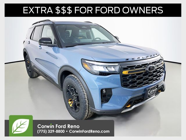 Great Deals are happening now at Corwin Ford Reno. Family owned for over 100 years! Corwin Ford Reno is proud to offer this. 2026 Ford Explorer Factory MSRP: $63,460 $4,000 off MSRP! Tremor In-Transit 3.0L EcoBoost V6 4WD Carbonized Gray Metallic See us today at Corwin Ford Reno or call us at (775) 329-8800. Family owned for over 100 years! Excellent selection of New and Used vehicles, Financing options. Serving Reno, Carson City, Sparks, the North Valleys, Spanish Springs, Verdi, Virginia City, the Carson Valley, and Northern Nevada. *All Prices plus applicable sales tax, and a license, and documentary service fee of $727.75 will be added to sales price or capitalized cost of the vehicle. One vehicle unless otherwise noted and subject to prior sale without notice. While supplies last. EPA mileage estimates are for newly manufactured vehicles only. Your actual mileage will vary depending on how you drive and maintain your vehicle. Rebates included: $4000 - Retail Customer Cash. Exp. 04/30/2026