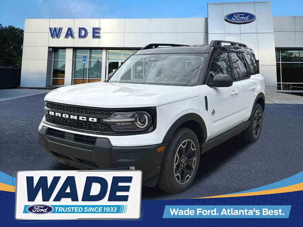 25/30 City/Highway MPG 2026 Ford Bronco Sport Outer BanksBronco Sport Outer Banks is nicely equipped with Equipment Group 300A Standard Package (AM/FM Stereo, Front Driver/Passenger Seat Back Map Pockets, SiriusXM with 360L, SYNC 4 with Enhanced Voice Recognition, and Wheels: 18 Ebony Black), Ford Connectivity Package (1-Year Included), Internet access capable: 5G Modem - Ford Connectivity Package, Outer Banks Tech Package+ (Connected Navigation (1-Year Included) and Radio: HD w/B&O Sound System by Bang & Olufsen), 360-Degree Camera with Trail View, 4-Wheel Disc Brakes, 6 Speakers, ABS brakes, Air Conditioning, Alloy wheels, AM/FM radio: SiriusXM with 360L, Apple CarPlay/Android Auto, Auto High-beam Headlights, Auto-dimming Rear-View mirror, Automatic temperature control, Brake assist, Compass, Delay-off headlights, Driver door bin, Driver vanity mirror, Dual front impact airbags, Dual front side impact airbags, Electronic Stability Control, Emergency communication system: SYNC 4 911 Assist, Exterior Parking Camera Rear, Four wheel independent suspension, Front anti-roll bar, Front Bucket Seats, Front Center Armrest, Front dual zone A/C, Front fog lights, Front Parking Sensors, Front reading lights, Fully automatic headlights, Heated door mirrors, Heated front seats, Heated steering wheel, Illuminated entry, Knee airbag, Low tire pressure warning, Memory seat, Occupant sensing airbag, Outside temperature display, Overhead airbag, Overhead console, Panic alarm, Passenger door bin, Passenger vanity mirror, Power door mirrors, Power driver seat, Power Moonroof, Power passenger seat, Power steering, Power windows, Radio data system, Rear anti-roll bar, Rear Parking Sensors, Rear reading lights, Rear seat center armrest, Rear window defroster, Rear window wiper, Remote keyless entry, Reverse Brake Assist, Security system, Speed control, Speed-sensing steering, Speed-Sensitive Wipers, Split folding rear seat, Steering wheel mounted audio controls, Tachometer, Telescoping steering wheel, Tilt steering wheel, Traction control, Trip computer, and Variably intermittent wipers.