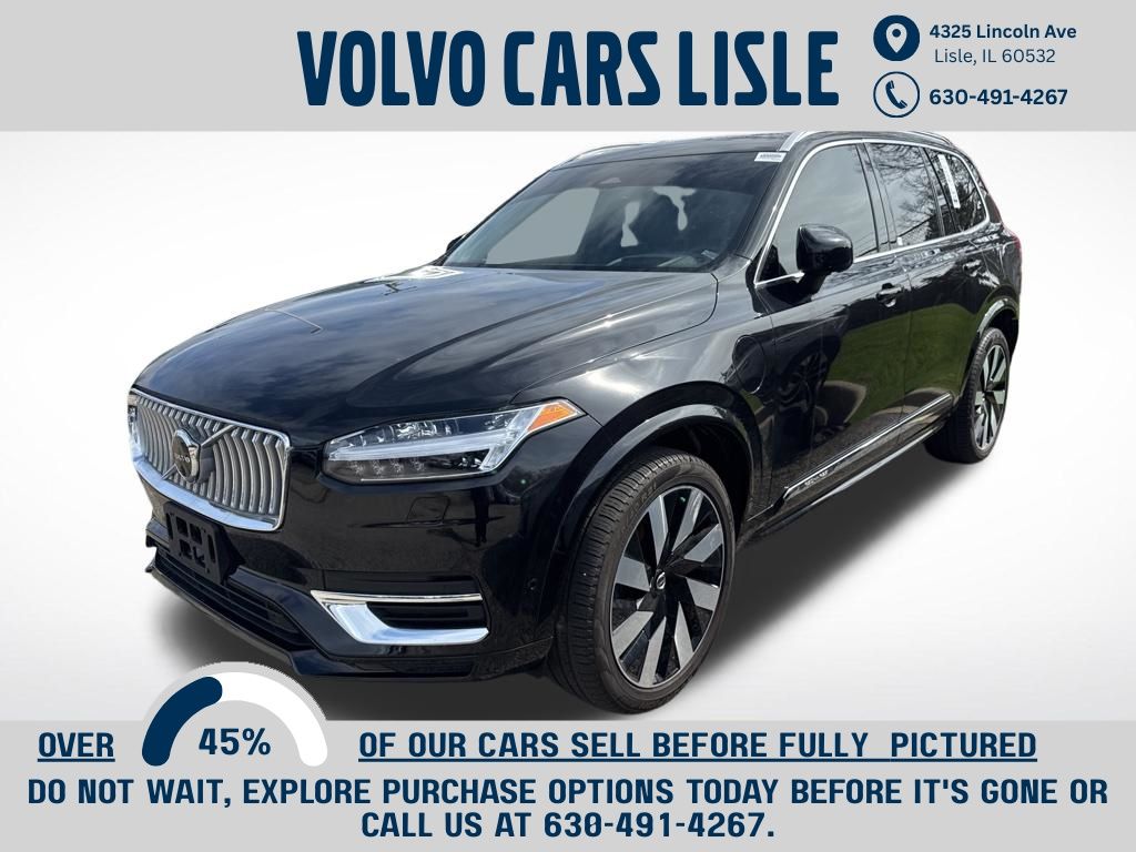This Crystal White Pearl 2026 Volvo XC90 Plug-In Hybrid T8 Plus combines timeless design, modern technology, and Volvos unmatched commitment to driver confidence. Experience the perfect balance of Scandinavian luxury, innovation, and safety only at Volvo Cars Lisle. . Crystal White Pearl 2026 Volvo XC90 Plug-In Hybrid T8 Plus 7 Passenger AWD 2.0L I4 Hybrid Turbocharged DOHC 16V LEV3-SULEV30, 10 Speakers, 3rd row seats: bucket, 4-Wheel Disc Brakes, ABS brakes, Air Conditioning, All-Weather Floor Mats, Alloy wheels, AM/FM radio: SiriusXM, Anti-whiplash front head restraints, Apple CarPlay, Auto High-beam Headlights, Auto-dimming door mirrors, Auto-dimming Rear-View mirror, Automatic temperature control, Brake assist, Bumper Cover, Bumpers: body-color, Cargo Tray, Delay-off headlights, Driver door bin, Driver vanity mirror, Dual front impact airbags, Dual front side impact airbags, Electronic Stability Control, Emergency communication system: Volvo Car Connect Plus (4-Year Subscription), Exterior Parking Camera Rear, First Aid Kit, Four wheel independent suspension, Front anti-roll bar, Front Bucket Seats, Front Center Armrest w/Storage, Front dual zone A/C, Front reading lights, Fully automatic headlights, Garage door transmitter: HomeLink, Genuine wood dashboard insert, Genuine wood door panel insert, Harman/Kardon Premium Sound, Headlight cleaning, Heated door mirrors, Heated Front Bucket Seats, Heated front seats, Heated rear seats, Heated steering wheel, Illuminated entry, Integrated rear child seats, Knee airbag, Low tire pressure warning, Memory seat, Navigation System, Nordico Upholstery, Occupant sensing airbag, Outside temperature display, Overhead airbag, Panic alarm, Passenger door bin, Passenger vanity mirror, Power door mirrors, Power driver seat, Power Liftgate, Power moonroof, Power passenger seat, Power steering, Power windows, Protection Package Premier, Radio data system, Radio: High Performance Audio System, Rain sensing wipers, Rear air conditioning, Rear anti-roll bar, Rear dual zone A/C, Rear fog lights, Rear reading lights, Rear seat center armrest, Rear window defroster, Rear window wiper, Remote keyless entry, Security system, Speed control, Speed-sensing steering, Split folding rear seat, Spoiler, Steering wheel mounted audio controls, Tachometer, Telescoping steering wheel, Traction control, Trip computer, Turn signal indicator mirrors, Variably intermittent wipers, Wheel Locks, Wheels: 21" 5-Multi Spoke Black Diamond Cut Alloy, 2.0L I4 Hybrid Turbocharged DOHC 16V LEV3-SULEV30. Voted #1 Illinois Volvo Dealer for consumer reviews by DealerRater.com. You can TRUST Volvo Cars Lisle to treat you right! **Dealer-installed accessories include Arbor Guard Protection Package. Price includes: $3000 - Purchase Allowance. Exp. 04/30/2026