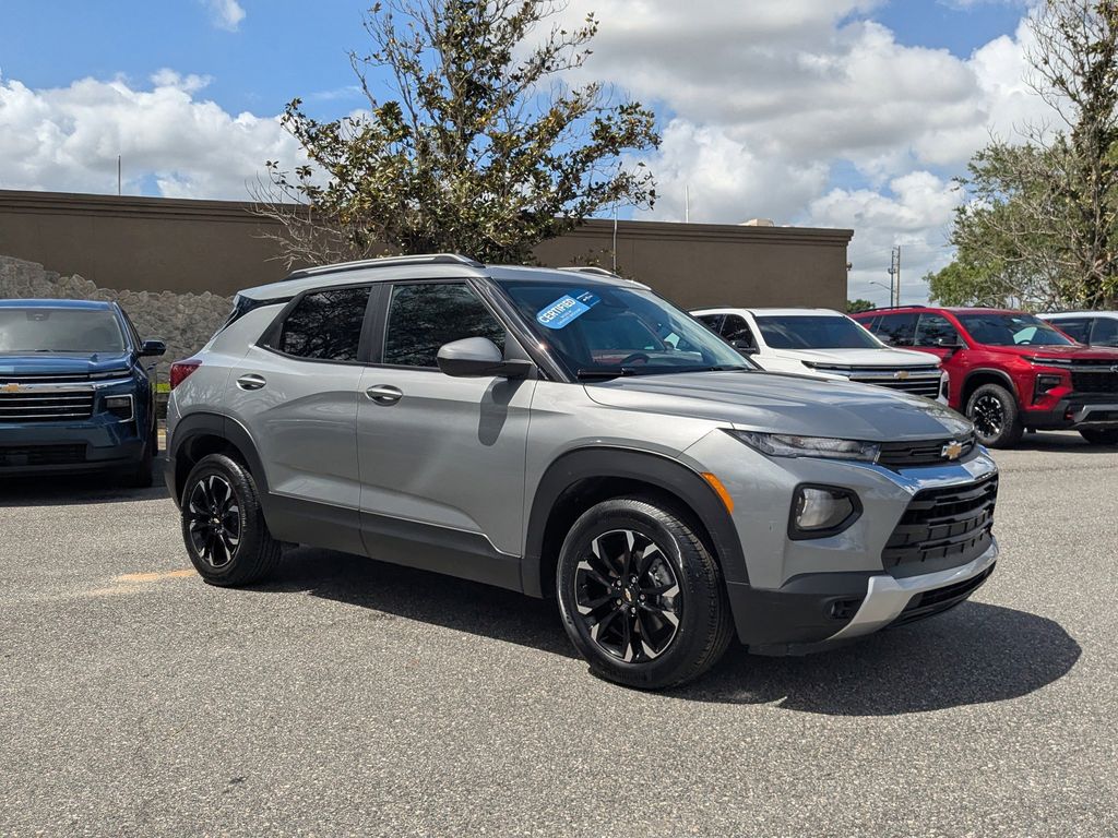 Clean CARFAX. This 2023 Chevrolet TrailBlazer LT in Sterling Gray Metallic features: FWD ONE OWNER, TrailBlazer LT, 4D Sport Utility, 1.2L Ecotec Turbo DOHC DI w/VVT, CVT, FWD, Sterling Gray Metallic, Jet Black Cloth, 6-Speaker Audio System Feature, 7" Diagonal Color Touchscreen, 8-Way Power Driver Seat Adjuster, Exterior Parking Camera Rear, Preferred Equipment Group 1LT, Radio: Chevrolet Infotainment 3 System, Remote keyless entry, SiriusXM Radio, Wheels: 17" High Gloss Black Machined Aluminum, Wireless Apple CarPlay/Android Auto. CARFAX One-Owner. 29/31 City/Highway MPG Come see us today at Palm Chevrolet or visit our virtual showroom 24/7 @ Palmchevrolet.com.