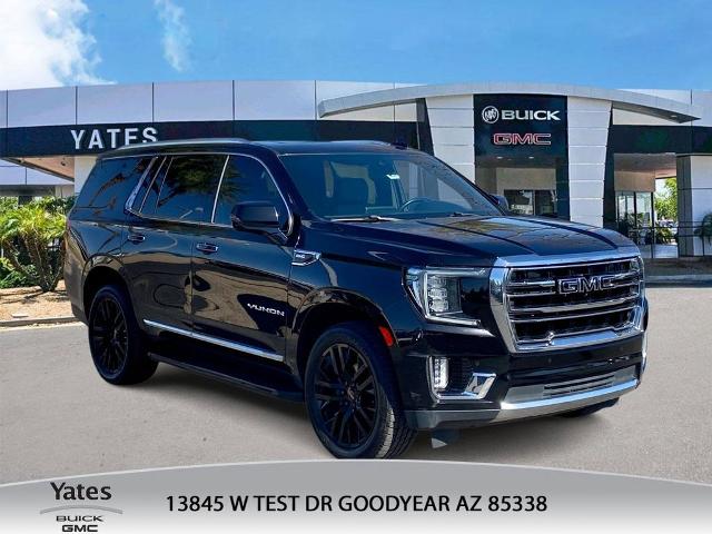 Elevate your driving experience with this exceptional 2022 GMC Yukon SLT. This powerful SUV boasts a commanding presence and a wealth of premium features that will elevate your commute and weekend adventures. - 22'' Multi-Spoke Gloss Black Wheels (LPO) - SLT Luxury Package - Power Panoramic Dual-Pane Sunroof - Max Trailering Package - Power-Sliding Center Console with Drawer - Heated and Ventilated Front Seats - Heated Second-Row Outboard Seats - Power-Folding Third-Row Seats - HD Surround Vision - Rear Pedestrian Alert - Memory Settings - Heated Steering Wheel - Bose 9-Speaker Audio System This Yukon SLT is equipped to handle any task with ease. Its EcoTec3 5.3L V8 engine and 4WD powertrain deliver exceptional performance and capability, while the 10-speed automatic transmission provides smooth and efficient power delivery. With an impressive towing capacity and the Max Trailering Package, you'll have the confidence to tackle any adventure, whether it's hauling your boat to the lake or your camper to the mountains. Inside, the Yukon SLT pampers you with luxurious touches, including perforated leather-appointed seating, a power-sliding center console, and a panoramic sunroof that floods the cabin with natural light. The Bose 9-speaker audio system and wireless charging pad ensure you and your passengers stay entertained and connected on the go. Safety is also a top priority, with features like HD Surround Vision, Rear Pedestrian Alert, and a suite of advanced driver assistance technologies to help keep you and your loved ones secure. The Yukon SLT's commanding presence and premium amenities make it a standout in the full-size SUV segment. Experience the exceptional craftsmanship and capability of the 2022 GMC Yukon SLT. Visit our showroom today and let us demonstrate how this remarkable SUV can elevate your driving experience.