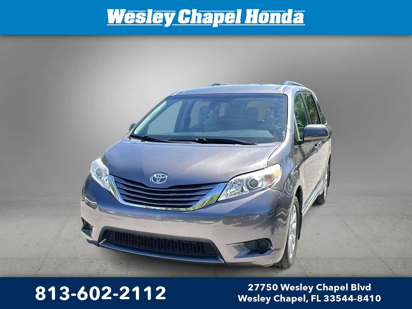 Clean CARFAX.Buy with Confidence at THE HOME OF THE LIFETIME WARRANTY! We Pay TOP DOLLAR for ALL TRADES! Challenged Credit? No Problem!! We specialize in hassle free financing for EVERYONE! Call us @ 813-602-2112 to reserve your test drive today! Looking to find out more? Call or stop in and see us at Honda of Wesley Chapel, 27750 Wesley Chapel Blvd Wesley Chapel, FL 33544 or visit us online at www.WesleyChapelHonda.com. Proudly serving Wesley Chapel, Lutz, Odessa, Land O Lakes, Dade City, Tampa, Zephyrhills, Brandon, Riverview, Palm Harbor, New Port Richey, Saint Petersburg and Clearwater!CLEAN AUTO CHECK, CLEAN CARFAX, Sienna XLE 7 Passenger, 4D Passenger Van, 3.5L V6 SMPI DOHC, 6-Speed Automatic Electronic with Overdrive, FWD, Blizzard Pearl, Ash w/Leather Seat Material, ABS brakes, Alloy wheels, Bumpers: body-color, Compass, Electronic Stability Control, Front dual zone A/C, Heated door mirrors, Heated Front Bucket Seats, Heated front seats, Illuminated entry, Leather Seat Material, Low tire pressure warning, Power door mirrors, Power Liftgate, Power moonroof, Remote keyless entry, Roof rack: rails only, Spoiler, Traction control.Price does not include $1,199 predelivery service fee, reconditioning, tax, title, or license and must be paid by the purchaser. Optional equipment and accessories available, see dealer for details. Online pricing is based on financing through dealership lenders. While great effort is made to ensure the accuracy of the information on this site, errors do occur so please verify information with a customer service rep. *Available with the purchase of New Models through Honda Service Pass. Up to 4 oil changes over 2 years. See Dealer for complete details.