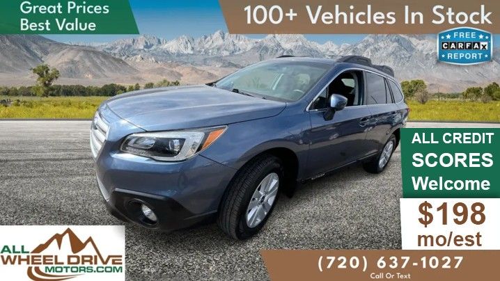 WE SHIP NATIONWIDE!Purchasing Out Of State? NO Problem!We ship Nationwide with a 3 Day / 250 Mile GuaranteeSee dealership representative for details.NEW ARRIVALVehicle Status InformationThis vehicle has just arrived at our facility and is currently in queue for service and inspection. It is available for deposit and purchase.How to Expedite Delivery: Placing a deposit will prioritize this vehicle in our service queue, significantly reducing wait time. Deposited vehicles typically complete service within 3 business days.Please note: Some vehicles may require additional time depending on parts availability or specific service requirements. Contact a sales representative for an accurate timeline and full vehicle details. (https://www.allwheeldrivemotors.com)ALL CREDIT SCORES WELCOME All Credit Levels Approved!PAYMENTS START AT $192/MONTH!Great Prices, Great Value on Pre-Owned Subaru's Colorado's Large Pre-Owned Subaru Selection, 100+ In Stock Today! Dealer Stock # D125151, 2015 Subaru Outback 2.5i Premium, Odometer 87,492 Cash Price: $11,799 Payments Start at $192 a Month (W.A.C) D & H Fee: $599 Total Cash Price: $12,298 This vehicle qualifies for the Carfax 1 year buy back guarantee. See the dealer for details.Easy and Quick Financing, Apply today with no obligation at: Apply for Financing (http://allwheeldrivemotors.com/financing)New Arrival Notice: This vehicle just arrived and is in our service queue. Place a deposit to prioritize service and reduce wait time.ESTIMATED MONTHLY PAYMENT Starting at $192/moEstimated Monthly Payment Based On: 25% Down Payment | Vehicle Year 2015 And Newer: 6.49% Interest Rate At 66 Months 2014 And Older: 8.64% Interest Rate At 63 Months With Approved Credit (W.A.C.)See Our Complete Up To Date Inventory at www.AllWheelDriveMotors.com (http://www.AllWheelDriveMotors.com/inventory)Call or Text: (720) 637-1027Visit Us At: 4890 Morrison Rd, Denver CO 80219 (https://www.google.com/maps/search/4890+Morrison+Rd,+Denver,+CO+80219)Open M-F 9-6, Sat 9-5, Closed Sundays