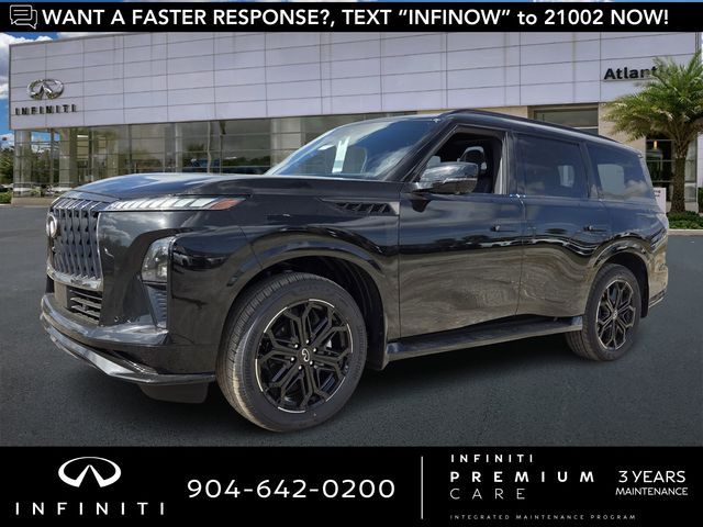 ***3 Years of INFINITI Premium Care Routine Maintenance*** WE DELIVER TO YOUR HOME OR OFFICE. 2026 INFINITI QX80 LUXE Obsidian 4WD 9-Speed Automatic 3.5L V6 DOHC 24V Priced below KBB Fair Purchase Price! 14 Speakers, 3rd row seats: bench, 4-Wheel Disc Brakes, ABS brakes, Adaptive suspension, Air Conditioning, Alloy wheels, AM/FM radio: SiriusXM with 360L, Anti-whiplash front head restraints, Apple CarPlay/Android Auto, Audio memory, Auto High-beam Headlights, Auto tilt-away steering wheel, Auto-dimming door mirrors, Auto-dimming Rear-View mirror, Auto-leveling suspension, Automatic temperature control, Brake assist, Bumpers: body-color, Compass, Delay-off headlights, Driver door bin, Driver vanity mirror, Dual front impact airbags, Dual front side impact airbags, Electronic Stability Control, Emergency communication system: INFINITI InTouch, Four wheel independent suspension, Front anti-roll bar, Front Bucket Seats, Front Center Armrest, Front dual zone A/C, Front reading lights, Fully automatic headlights, Garage door transmitter: myQ Connected Garage, Heads-Up Display, Heated and Climate Controlled Front Bucket Seats, Heated door mirrors, Heated front seats, Heated rear seats, Heated steering wheel, HVAC memory, Illuminated entry, Knee airbag, Leather Seating Surfaces, Leather steering wheel, Low tire pressure warning, Memory seat, Navigation system: Google Built-in, Occupant sensing airbag, Outside temperature display, Overhead airbag, Overhead console, Panic alarm, Passenger door bin, Passenger vanity mirror, Power door mirrors, Power driver seat, Power Liftgate, Power moonroof, Power passenger seat, Power steering, Power windows, Radio data system, Radio: Klipsch Premium Audio System, Rain sensing wipers, Rear air conditioning, Rear anti-roll bar, Rear reading lights, Rear seat center armrest, Rear window defroster, Rear window wiper, Reclining 3rd row seat, Remote keyless entry, Security system, Speed control, Speed-sensing steering, Split folding rear seat, Spoiler, Steering wheel memory, Steering wheel mounted audio controls, Tachometer, Telescoping steering wheel, Tilt steering wheel, Traction control, Trip computer, Turn signal indicator mirrors, Variably intermittent wipers, Ventilated front seats, Ventilated rear seats, and Wheels: 22" x 8.5J Cast Aluminum Alloy. Price includes: $7000 - Retail Cash. Exp. 05/04/2026