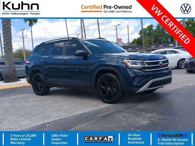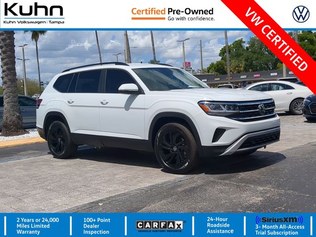 **VW CERTIFIED 2023 VOLKSWAGEN ATLAS V6 SE W/ TECHNOLOGY W/ PURE WHITE EXTERIOR, TITAN BLACK LEATHER INTERIOR, 3.6L V6, 8-SPEED AUTOMATIC FWD. FEATURES: PANORAMIC SUNROOF, 2ND-ROW CAPTAIN'S CHAIRS, 20" BLACK ALLOY WHEELS, MONSTER MATS, DIGITAL COCKPIT PRO, APP-CONNECT, HEATED SEATS, PARK DISTANCE CONTROL, FRONT ASSIST, SIDE ASSIST, REAR TRAFFIC ALERT AND SO MUCH MORE!!** Odometer is 13414 miles below market average! Volkswagen Certified Pre-Owned Details: * Vehicle History * 100+ Point Inspection * Model Year 2020 and Newer Vehicles: 2-Year or 24,000-Mile (whichever occurs first) Comprehensive Limited Warranty. Model Year 2019 Vehicles: 1-Year or 12,000-Mile (whichever comes first) Comprehensive Limited Warranty. Electric Vehicles Model Year 2019 & Newer: 3-Year or 36,000-Mile (whichever comes first) Comprehensive Limited Warranty. 2 Years of 24-Hour Roadside Assistance, Three Months of SiriusXM Platinum Plan Trial Subscription. * Warranty Deductible: $50 * Roadside Assistance We Save You Time and Money Utilizing Internet Value Pricing! Our goal at Kuhn is to save you thousands on any vehicle in-stock by presenting market-based Internet Value Pricing. We do not artificially inflate our vehicle prices, attempting to win a negotiation contest with our guests. In short, we never play pricing games! Kuhn Automotive Group--Proudly serving the Greater Tampa Bay Area and beyond, including Saint Petersburg, Clearwater, Tarpon Springs, Safety Harbor, Brandon, Temple Terrace, Pinellas Park, Plant City, Largo, Lakeland, Orlando, and YOU! Call us today! (813) 872-4841.
