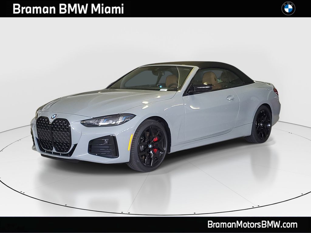 Brooklyn Grey Metallic 2026 BMW 4 Series 430i RWD 8-Speed Automatic Sport 2.0L 4-Cylinder TwinPower Turbo Features: Connected Package Pro Limited Term, M Sport Package, M Sport Package Pro, Parking Assistance Package (Parking Assistant Plus and Parking View with 3D View (Surround View)), Premium Package (BMW Curved Display with HUD, Harman/Kardon Surround Sound System, Heated Steering Wheel, and Remote Engine Start), Shadowline Package (Black Mirror Caps, Extended Shadowline Trim, Full LED Headlights with Laserlight Taillights, and M Shadowline Lights), 10 Speakers, 4-Wheel Disc Brakes, 48V Mild Hybrid System, ABS brakes, Aerodynamic Kit, Air Conditioning, Alloy wheels, AM/FM Radio, AM/FM radio: SiriusXM with 360L, Apple CarPlay and Android Auto Compatibility, Audio memory, Auto High-beam Headlights, Auto-dimming door mirrors, Auto-dimming Rear-View mirror, Automatic temperature control, BMW Assist ECall, BMW TeleServices, Brake assist, Bumpers: body-color, Compass, ConnectedDrive Services, Convertible roof lining, Convertible roof wind blocker, Delay-off headlights, Drive Recorder, Driver door bin, Driver vanity mirror, Dual front impact airbags, Dual front side impact airbags, Electronic Stability Control, Emergency communication system: BMW Assist eCall, Exterior Parking Camera Rear, Four wheel independent suspension, Front anti-roll bar, Front Bucket Seats, Front Center Armrest, Front dual zone A/C, Front reading lights, Fully automatic headlights, Garage door transmitter, Genuine wood console insert, Genuine wood dashboard insert, Glass rear window, Heated door mirrors, Heated Front Seats, Heated front seats, Hi-Fi Sound System, HVAC memory, Illuminated entry, Integrated roll-over protection, Knee airbag, Leather steering wheel, Low tire pressure warning, Lumbar Support, M Sport Brakes with Red Calipers, M Sport Suspension, M Steering Wheel, Memory seat, Navigation, Navigation System, Occupant sensing airbag, Outside temperature display, Overhead console, Panic alarm, Passenger door bin, Passenger vanity mirror, Perforated SensaTec Upholstery, Personal ESIM 5G, Power convertible roof, Power door mirrors, Power driver seat, Power Front Seats, Power passenger seat, Power steering, Power windows, Radio data system, Rain sensing wipers, Rear anti-roll bar, Rear reading lights, Rear seat center armrest, Rear window defroster, Remote keyless entry, Security system, SensaTec Dashboard, Shadowline Exterior Trim, SiriusXM with 360L and 1 Year Trial Subscription, Speed control, Speed-sensing steering, Speed-Sensitive Wipers, Split folding rear seat, Sport Seats, Sport steering wheel, Steering wheel mounted audio controls, Tachometer, Telescoping steering wheel, Tilt steering wheel, Traction control, Trip computer, Turn signal indicator mirrors, Variable Sport Steering, Variably intermittent wipers, Wheels: 18" x 7.5" V-Spoke Bicolor, Wheels: 19" x 8" M Dual-Spoke Bicolor, Wheels: 19" x 8" M Dual-Spoke Jet Black, Widescreen Display, Wireless Device Charging, and Without Lines Designation Outside. 27/35 City/Highway MPG