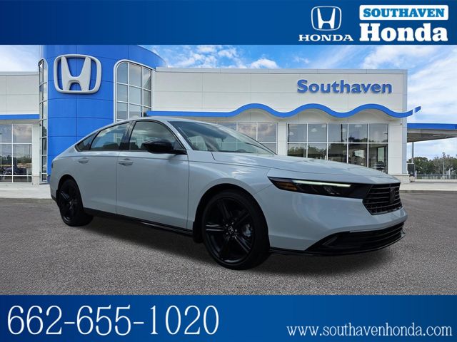 Recent Arrival! 46/41 City/Highway MPG 2026 Honda Accord Hybrid Touring FWD 2.0L I4 DOHC 16V CVT Southaven Honda is very proud to offer this fantastic 2026 Honda Accord Hybrid in Crystal Black Pearl This vehicle has passed our comprehensive inspection and comes with the following 12 Speakers, 4-Wheel Disc Brakes, ABS brakes, Adaptive Cruise Control: Adaptive Cruise Control (ACC) with Low-Speed Follow, Air Conditioning, Alloy wheels, AM/FM radio, Apple CarPlay/Android Auto, Auto High-beam Headlights, Auto-dimming Rear-View mirror, Automatic temperature control, Blind Spot Information (BSI) System warning, Bose Premium Sound System, Brake assist, Bumpers: body-color, Compass, Delay-off headlights, Driver door bin, Driver vanity mirror, Dual front impact airbags, Dual front side impact airbags, Electronic Stability Control, Emergency communication system: HondaLink, Exterior Parking Camera Rear, Four wheel independent suspension, Front anti-roll bar, Front Bucket Seats, Front Center Armrest, Front dual zone A/C, Front reading lights, Fully automatic headlights, Heads-Up Display, Heated and Ventilated Front Bucket Seats, Heated door mirrors, Heated front seats, Heated rear seats, Heated steering wheel, Illuminated entry, Knee airbag, Lane departure: Lane Keeping Assist System (LKAS) active, Leather Shift Knob, Leather steering wheel, Leather-Trimmed Seat Trim, Low tire pressure warning, Memory seat, Navigation System, Occupant sensing airbag, Outside temperature display, Overhead airbag, Overhead console, Panic alarm, Passenger door bin, Passenger vanity mirror, Power door mirrors, Power driver seat, Power moonroof, Power passenger seat, Power steering, Power windows, Radio data system, Rain sensing wipers, Rear anti-roll bar, Rear reading lights, Rear seat center armrest, Rear side impact airbag, Rear window defroster, Remote keyless entry, Security system, Speed control, Speed-sensing steering, Speed-Sensitive Wipers, Split folding rear seat, Steering wheel mounted audio controls, Telescoping steering wheel, Tilt steering wheel, Traction control, Trip computer, Turn signal indicator mirrors, Variably intermittent wipers, Ventilated front seats, and Wheels: 19" x 8.5J Berlina Black; Price does not include dealer installed accessories.