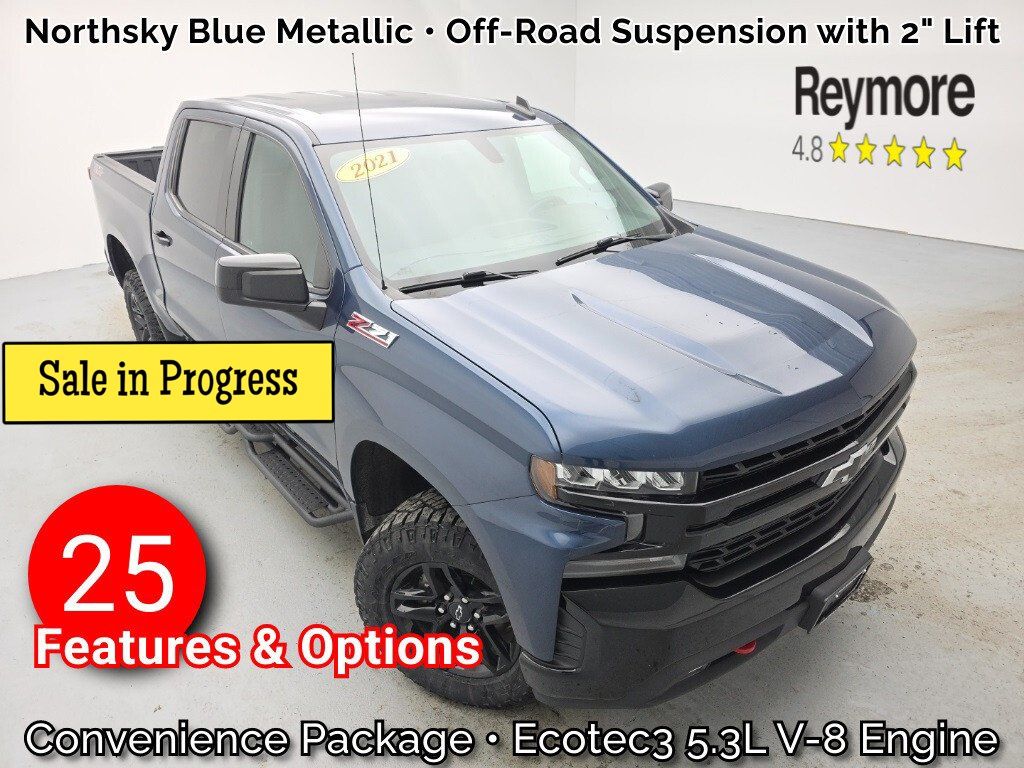 One Owner, Clean CARFAX, 4WD, Back Up Camera, Bluetooth, Cloth Seats, Power Driver Seat, Forward Collision Warning, Lane Departure Warning, Lane Keeping Assist, Automatic emergency braking, Brake Assist, CarPlay/Android Auto, Steering Wheel Audio Controls, XM Satellite Radio, Smart Device Integration, WiFi Hotspot, Wireless CarPlay/Android Auto, Keyless Entry, Remote start, Auto High Beam Headlights, Heated Mirrors, Tow Hitch, Chevrolet Connected Access Capable, Custom Convenience Package, Custom Value Package, Deep-Tinted Glass, Following Distance Indicator, Front Frame-Mounted Black Recovery Hooks, Front Pedestrian Braking, High Capacity Suspension Package, OnStar & Chevrolet Connected Services Capable, Preferred Equipment Group 1CX, Trailering Package, 20" Bright Silver Painted Aluminum Wheels and much more! Any of our Pre-Owned vehicles at Reymore Chevrolet may be subject to an open recall by the manufacturer. Please contact us for details or simply copy and paste the vin into https://vinrcl.safercar.gov/vin/ for additional info. Thank You!