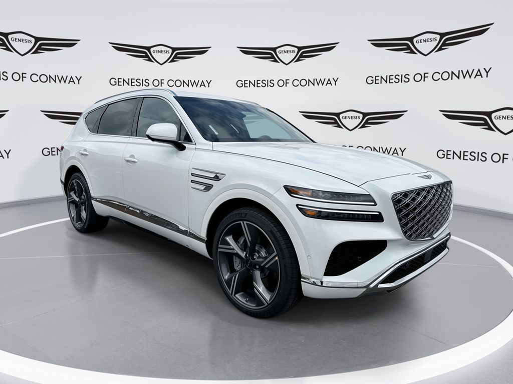 Option Group 01,Up Seatback Cargo Mat,First Aid Kit,G1 Accessory Package,Ball Mount Kit,Radio: 14.5" Navigation System with AM/FM/HD,Heated and Ventilated Front Bucket Seats,Leather Seating Surfaces,Wheels: 19" Light Hyper Silver Alloy,Tow Hitch,4-Wheel Disc Brakes,Android Auto & Apple CarPlay,Emergency communication system: Genesis Connected Services,Auto High-beam Headlights,Exterior Parking Camera Rear,AM/FM radio: SiriusXM,Front Center Armrest w/Storage,16 Speakers,Speed-Sensitive Wipers,Auto-dimming Rear-View mirror,Ventilated front seats,Variably intermittent wipers,Turn signal indicator mirrors,Trip computer,Traction control,Tilt steering wheel,Telescoping steering wheel,Steering wheel mounted audio controls,Steering wheel memory,Split folding rear seat,Speed-sensing steering,Speed control,Security system,Remote keyless entry,Rear window wiper,Rear window defroster,Rear seat center armrest,Rear reading lights,Rear anti-roll bar,Rain sensing wipers,Power windows,Power steering,Power passenger seat,Power moonroof,Power driver seat,Power door mirrors,Passenger vanity mirror,Passenger door bin,Panic alarm,Overhead console,Overhead airbag,Outside temperature display,Occupant sensing airbag,Memory seat,Low tire pressure warning,Leather steering wheel,Knee airbag,Illuminated entry,Heated steering wheel,Heated front seats,Heated door mirrors,Garage door transmitter: HomeLink,Fully automatic headlights,Front reading lights,Front dual zone A/C,Front anti-roll bar,Four wheel independent suspension,Dual front side impact airbags,Dual front impact airbags,Driver vanity mirror,Driver door bin,Delay-off headlights,Bumpers: body-color,Brake assist,Automatic temperature control,Auto-dimming door mirrors,Anti-whiplash front head restraints,Alloy wheels,Adjustable head restraints: driver and passenger w/tilt,ABS brakes,Tachometer,Spoiler,Power Liftgate,Navigation System,Front Bucket Seats,Electronic Stability Control,Air Conditioning