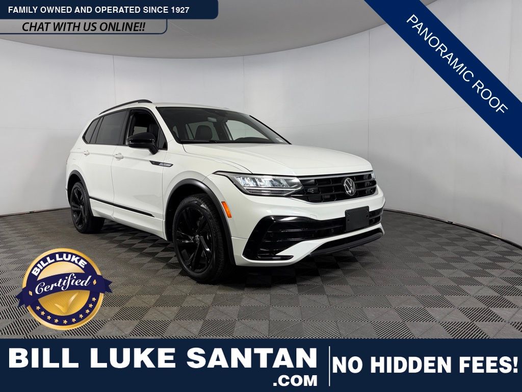 BILL LUKE CERTIFIED! NO HIDDEN FEES! ALL RECONDITIONING COSTS ARE FULLY INCLUDED IN OUR PRICES. ONE OWNER! LEASE RETURN! PANORAMIC ROOF, NAVIGATION, LEATHER, 20" WHEELS, BLIND SPOT MONITOR, LANE KEEP ASSIST AND 10.25" TOUCHSCREEN DISPLAY! This 2023 Tiguan SEL R-Line is a sophisticated blend of European design and versatile utility, finished in the premium Opal White Pearl with a Titan Black leather interior. As the top-of-the-line trim, the SEL R-Line delivers a "monstrous" level of standard equipment, including a more athletic R-Line exterior and a tech-forward cabin that feels decidedly upscale for the compact SUV segment. Top High-Value Optional Items: Panoramic Sunroof Package: (Valued at $1,200 on lower trims). IQ.DRIVE Package: Advanced safety suite including Travel Assist and Adaptive Cruise (Valued at $895 on base models). R-Line Appearance Package: Includes 20-inch alloy wheels, R-Line bumpers, and specialized interior trim. Technology & Audio: Includes the 10.25-inch Digital Cockpit Pro and the Fender Premium Audio system. At Bill Luke, family-owned since 1927, we know that a daily driver should be as fun as it is functional and the Tiguan SEL R-Line hits that mark perfectly. It is powered by a 2.0L Turbocharged 4-cylinder engine producing 184 horsepower and 221 lb-ft of torque, paired with an 8-speed automatic transmission. This model features the 4MOTION All-Wheel Drive system with Active Control, allowing you to switch between On-Road, Snow, and Off-Road modes to conquer any Arizona terrain. The interior is a high-tech sanctuary featuring the Volkswagen Digital Cockpit Pro (a 10.25-inch configurable display) and an 8-inch touchscreen with navigation and a premium Fender Audio System. Comfort is premium with Vienna leather seating surfaces, ventilated and heated front seats, and a heated steering wheel. Safety is comprehensive with the IQ.DRIVE suite, which includes Travel Assist (semi-automated driving support), Adaptive Cruise Control, and Emergency Assist, which can bring the vehicle to a controlled stop if the driver becomes unresponsive. This vehicle is Certified by Bill Luke! Bill Luke Certified vehicles are backed by a 3 month/3000 mile limited powertrain warranty and a 7-day/150 mile buyback guarantee! Bill Luke Santan is a family owned and operated business that has done business the right way since 1927. You can buy with confidence! Unlike some of our competitors, our RECONDITIONING COSTS are INCLUDED in the sales price. Bill Luke Santan's price is based on Kelley Blue Book Price AdvisorTM - which allows you to see what other Arizona residents have paid for the same year, make and model of vehicle while considering vehicle mileage. See dealer for details or visit www.billlukesantan.com to see the difference for yourself!