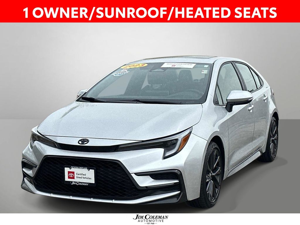 1 OWNER, CLEAN CARFAX, BLUETOOTH, REAR VIEW CAMERA, ALL WHEEL DRIVE, KEYLESS ENTRY, 47/41 City/Highway MPG Midnight Black 2025 Toyota Corolla Hybrid SE AWD CVT 1.8L DOHC 16V VVT 1.8L DOHC 16V VVT, 4-Wheel Disc Brakes, 6 Speakers, ABS brakes, Air Conditioning, All Weather Floor Liner Package: Tub Style, Alloy wheels, AM/FM radio: SiriusXM, Apple CarPlay/Android Auto, Auto High-beam Headlights, Automatic temperature control, Body Side Molding, Brake assist, Bumpers: body-color, Delay-off headlights, Door Edge Guards, Door Sill Protectors, Driver door bin, Driver vanity mirror, Dual front impact airbags, Dual front side impact airbags, Electronic Stability Control, Emergency communication system: Safety Connect (up to 10-year trial subscription), Exterior Parking Camera Rear, Fabric Seat Trim, Four wheel independent suspension, Front anti-roll bar, Front Bucket Seats, Front Center Armrest, Front reading lights, Fully automatic headlights, Heated door mirrors, Illuminated entry, Knee airbag, Leather steering wheel, Low tire pressure warning, Mudguards, Occupant sensing airbag, Outside temperature display, Overhead airbag, Panic alarm, Passenger door bin, Passenger vanity mirror, Power door mirrors, Power steering, Power windows, Premium Front Sport Seats, Quick Charge Cable, Radio data system, Radio: 8" Toyota Audio Multimedia, Rear anti-roll bar, Rear Bumper Protector, Rear seat center armrest, Rear side impact airbag, Rear window defroster, Remote keyless entry, Speed control, Split folding rear seat, Spoiler, Steering wheel mounted audio controls, Tachometer, Telescoping steering wheel, Tilt steering wheel, Traction control, Trip computer, Trunk LED Light, Turn signal indicator mirrors, Variably intermittent wipers, Wheels: 18" Graphite-Colored Alloy, 1.8L DOHC 16V VVT. At Jim Coleman Toyota, we offer new Toyota cars in Bethesda, along with used cars, trucks and SUVs by top manufacturers. Our sales staff will help you find that new or used car you have been searching for. For years, our financial staff at Jim Coleman Toyota has offered expert advice for those seeking a great Toyota car loan or lease. Our service doesn't stop there. Bethesda customers can come in and take advantage of our knowledgeable car repair technicians and a fully-stocked inventory of Toyota car parts. You can reach Jim Coleman any time by filling out our contact form, by calling us or simply visiting our dealership.